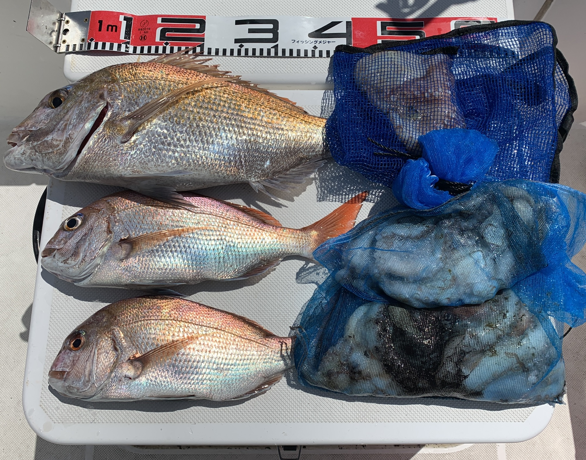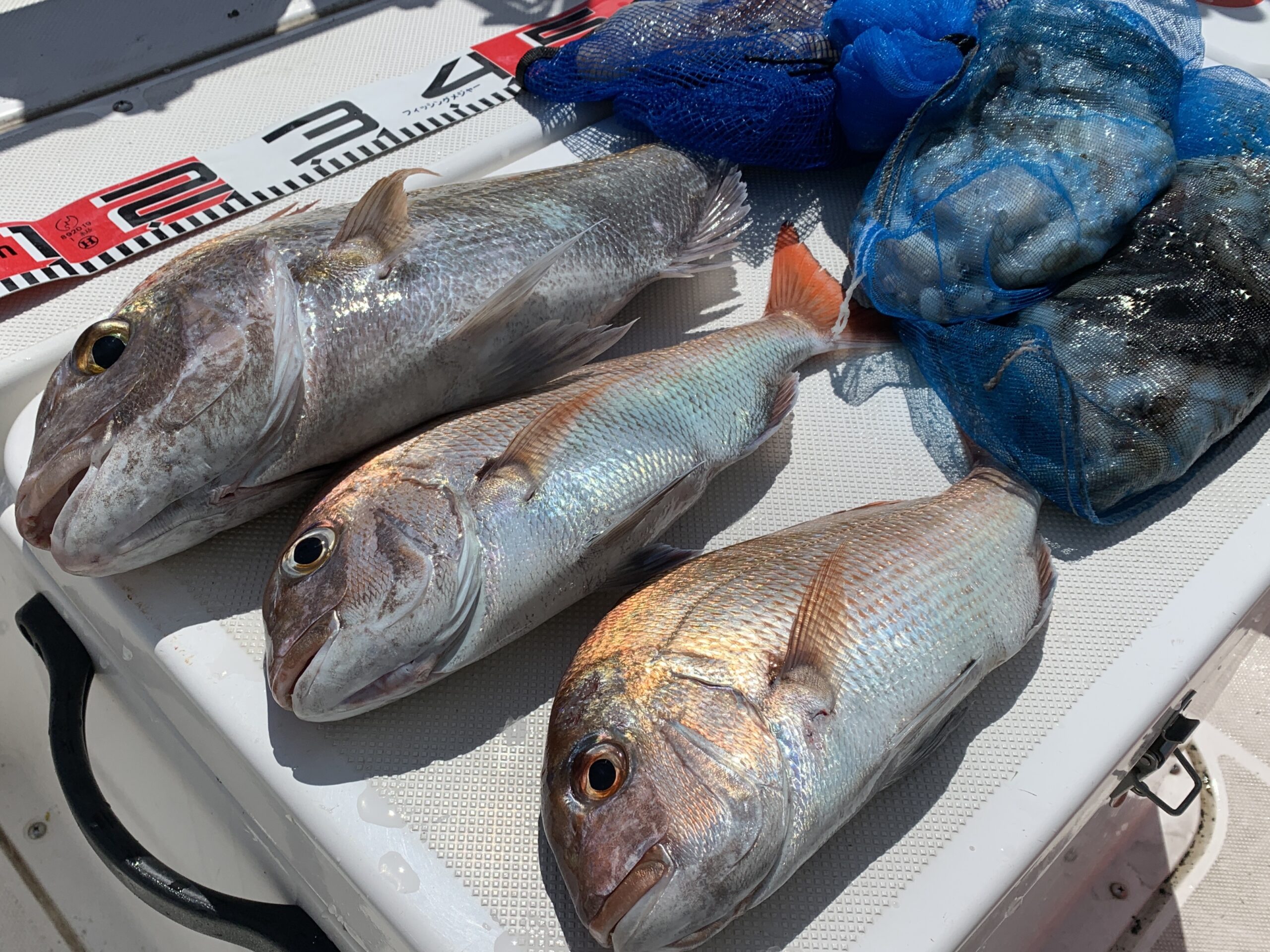 本日の釣果は船中、マダコ5杯(最大710g)・マダイ3匹(最大60cm)でした🎣