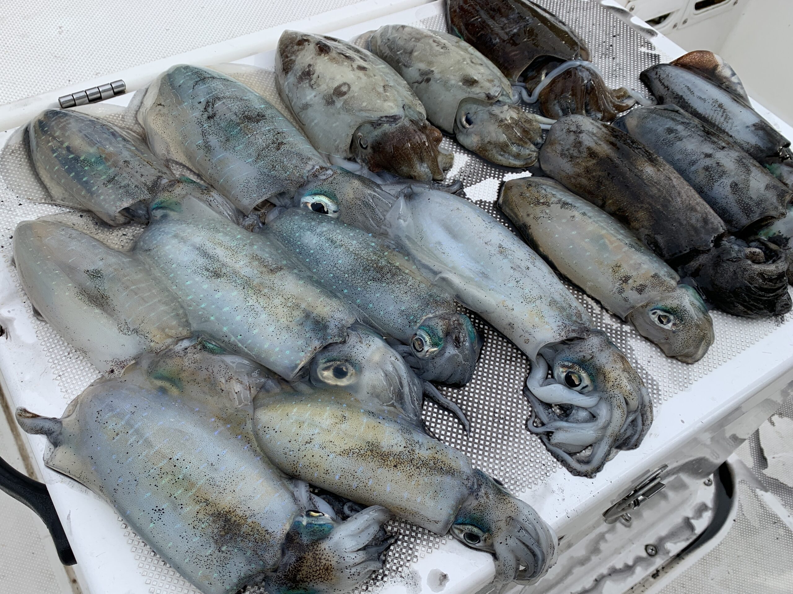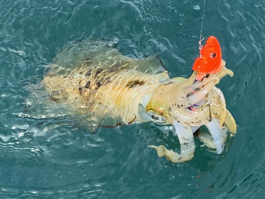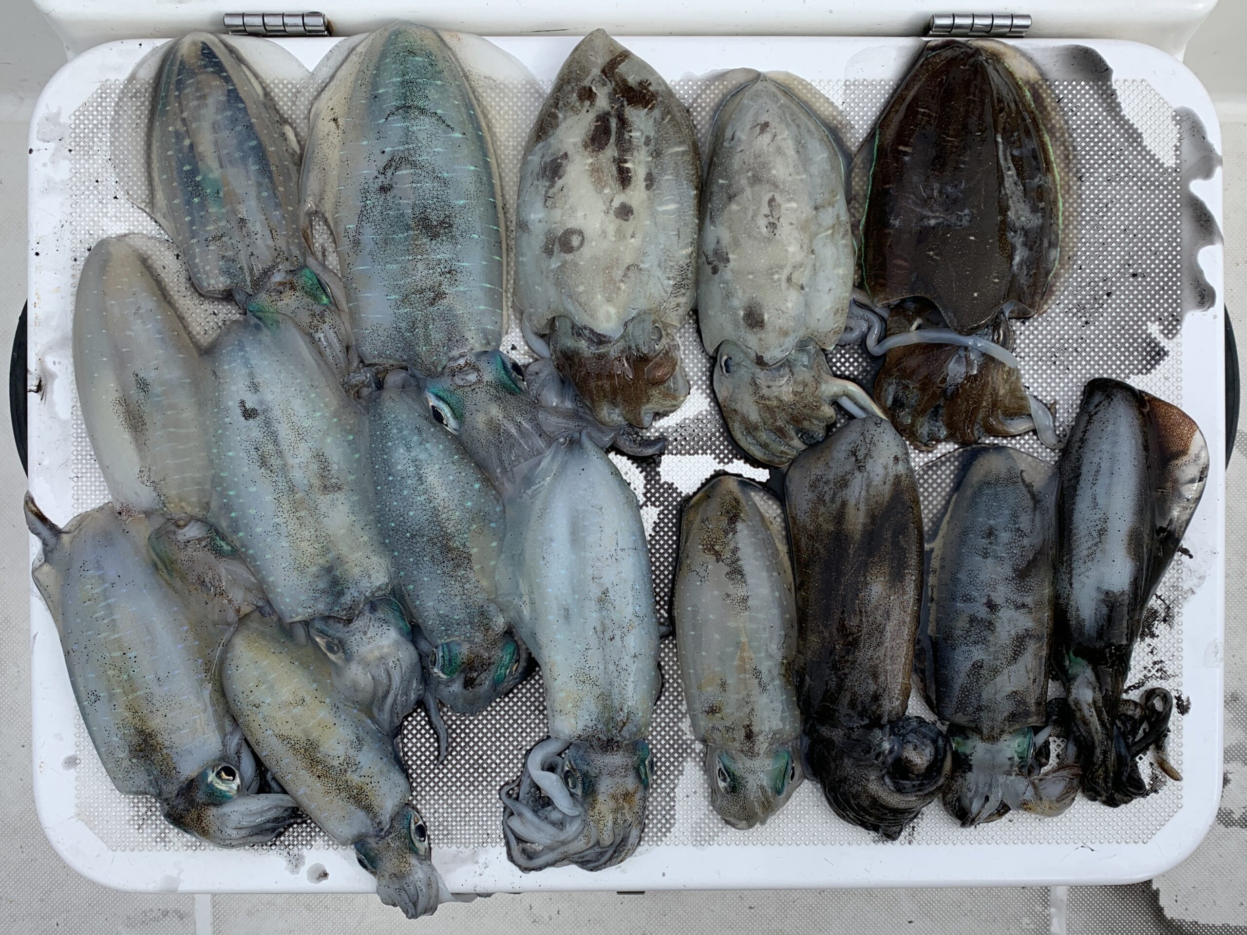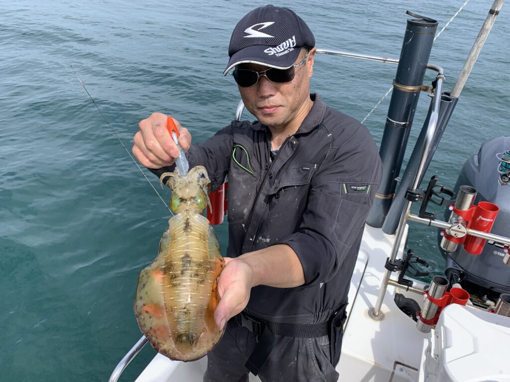 その後もお2人には時間一杯ティップラン釣行を楽しんで頂き、とくに本日ニュータックルをお持ち込み頂いた方は、アオリイカ8杯・コウイカ3杯と立派にニュータックルへの墨付けも完了して頂けたので、予定通り13時前に納竿とし帰港致しました🛥️💨