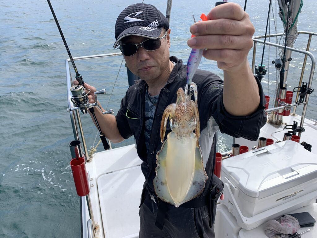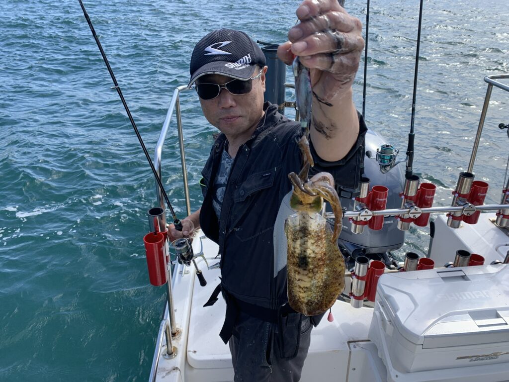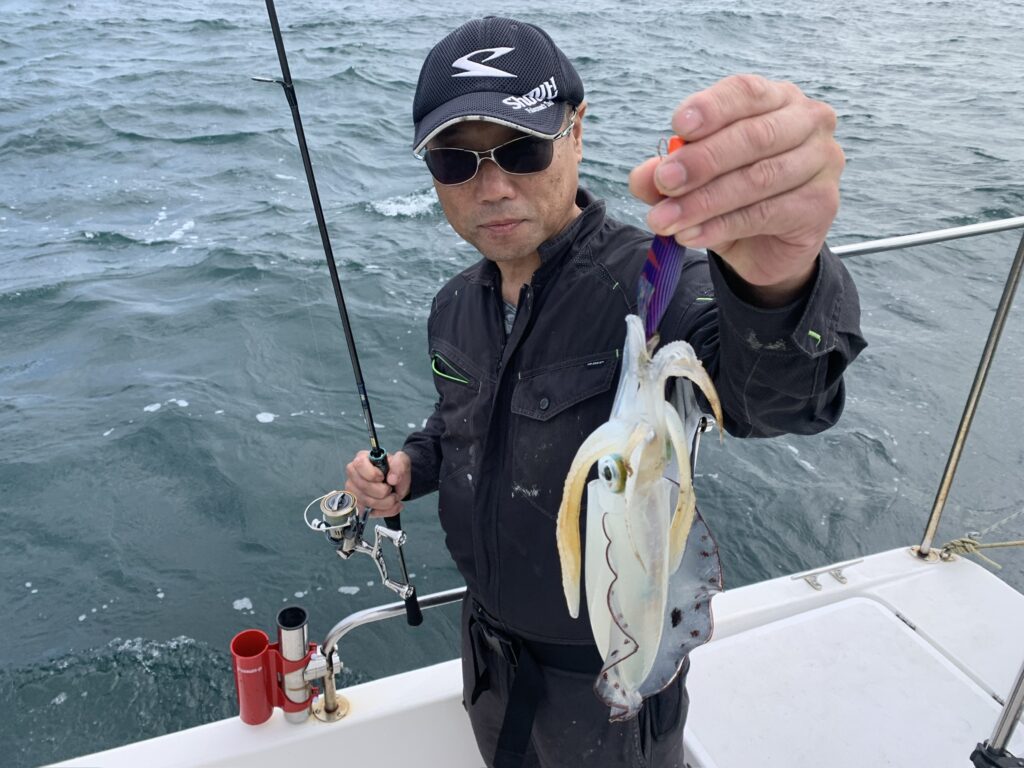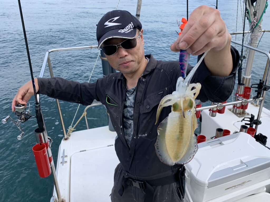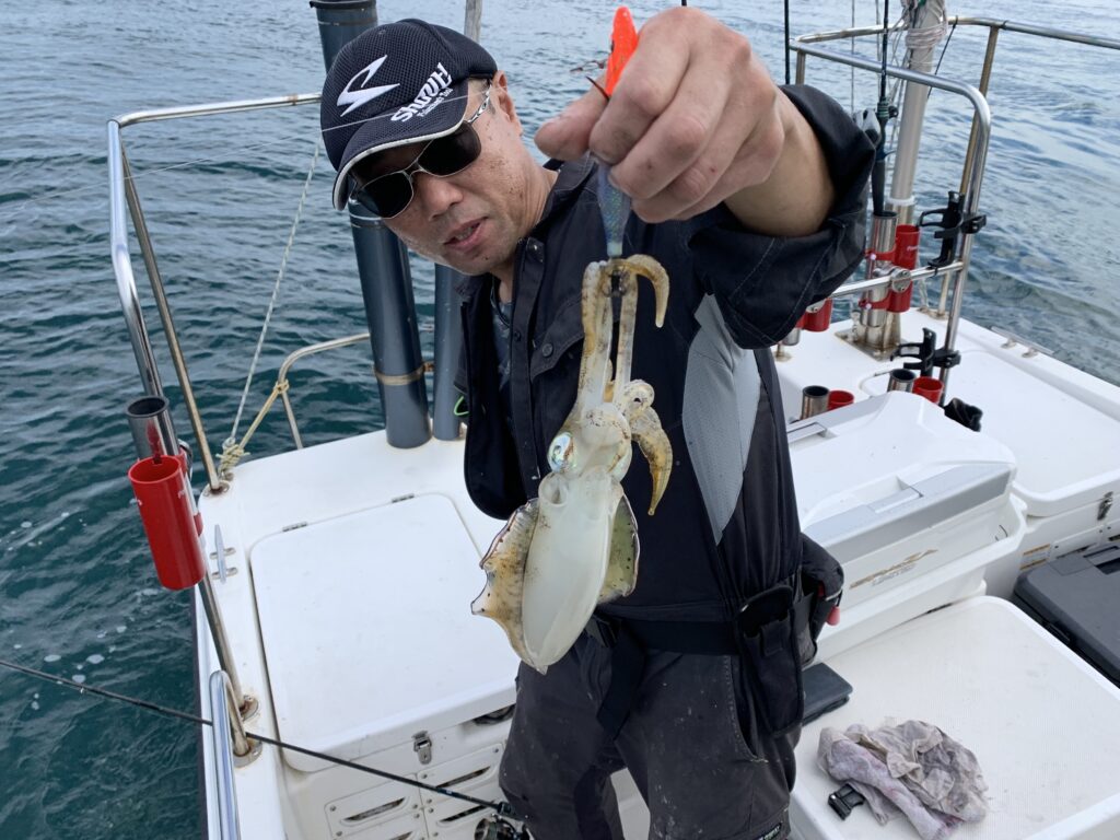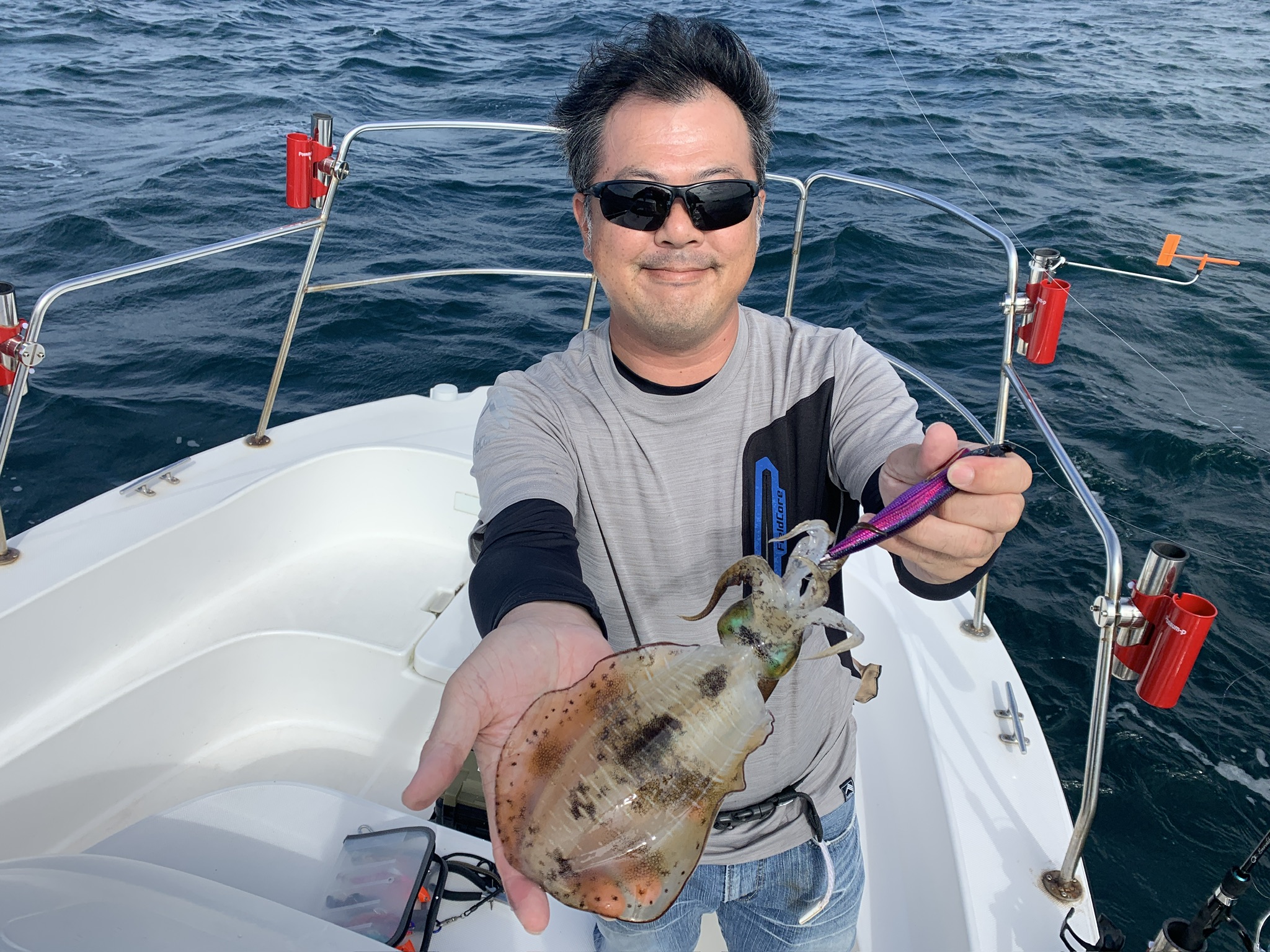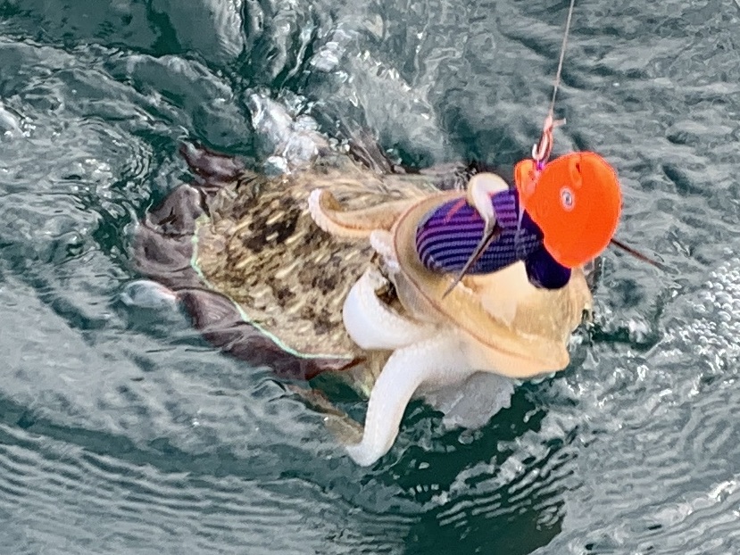 その後もお2人には時間一杯ティップラン釣行を楽しんで頂き、とくに本日ニュータックルをお持ち込み頂いた方は、アオリイカ8杯・コウイカ3杯と立派にニュータックルへの墨付けも完了して頂けたので、予定通り13時前に納竿とし帰港致しました🛥️💨