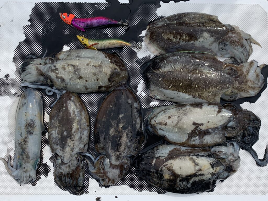 本日の釣果は船中、アオリイカ1杯・紋甲イカ7杯(最大420g)でした🦑