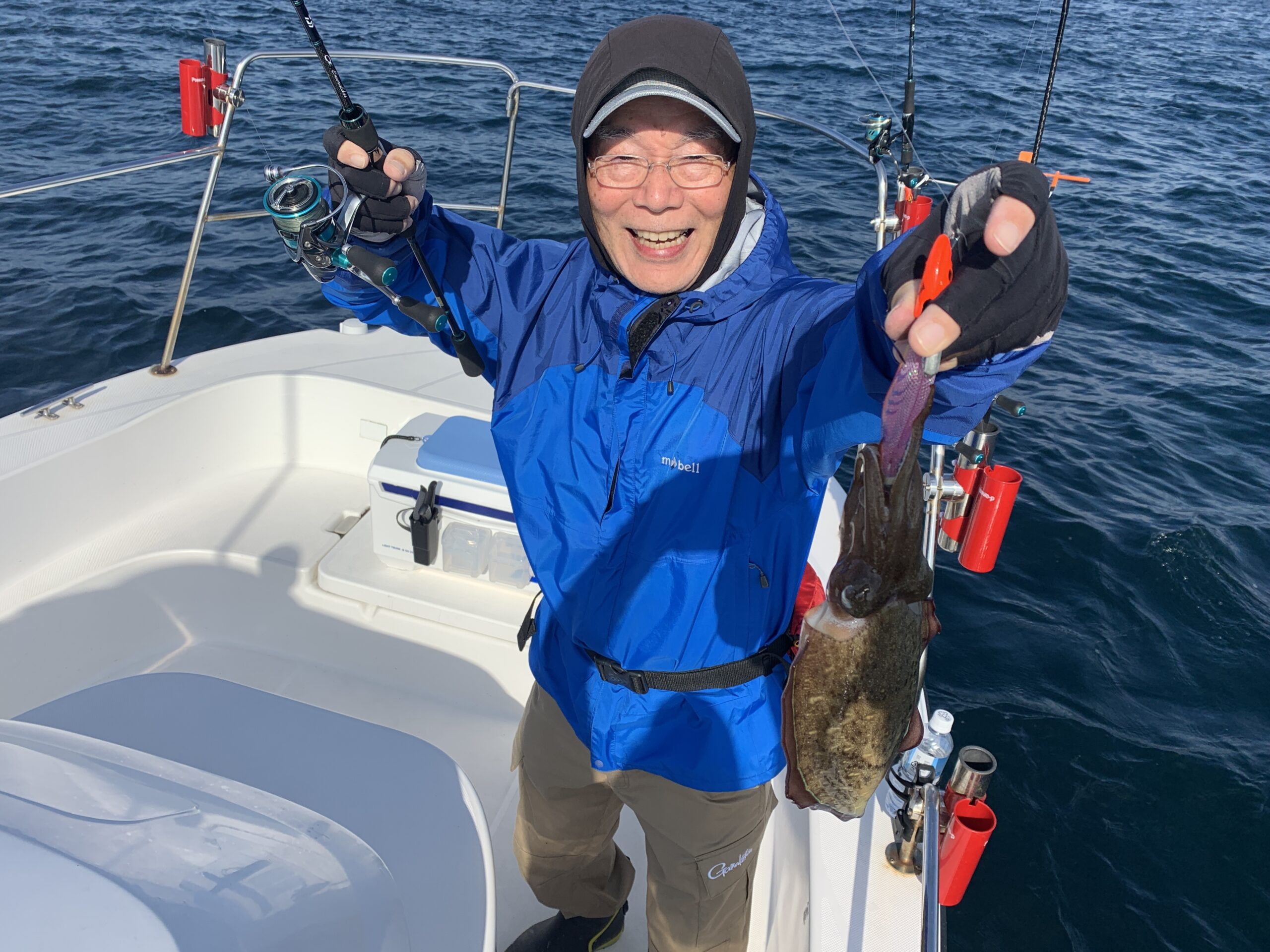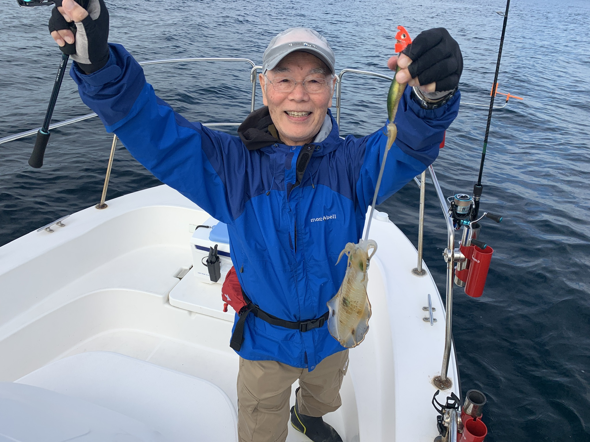 短時間釣行&初ティップランチャレンジのお客さまでしたが、レンタルロッドの扱いにも直ぐに慣れて頂きティップが走る当たりを時間一杯楽しんで頂き、無事に狙いのアオリイカと嬉しいゲストの紋甲イカを釣り上げて頂く事が出来ました👌