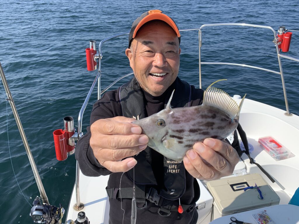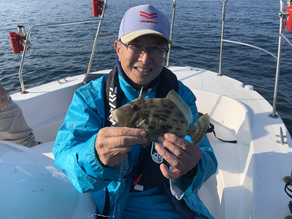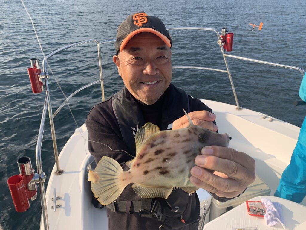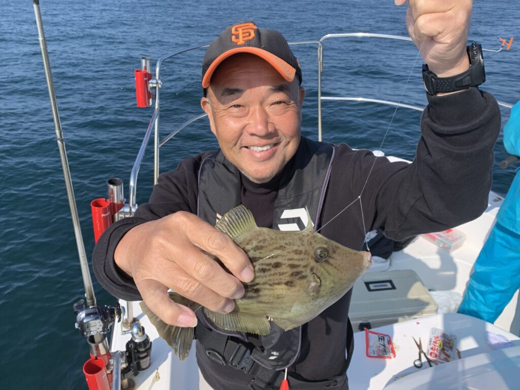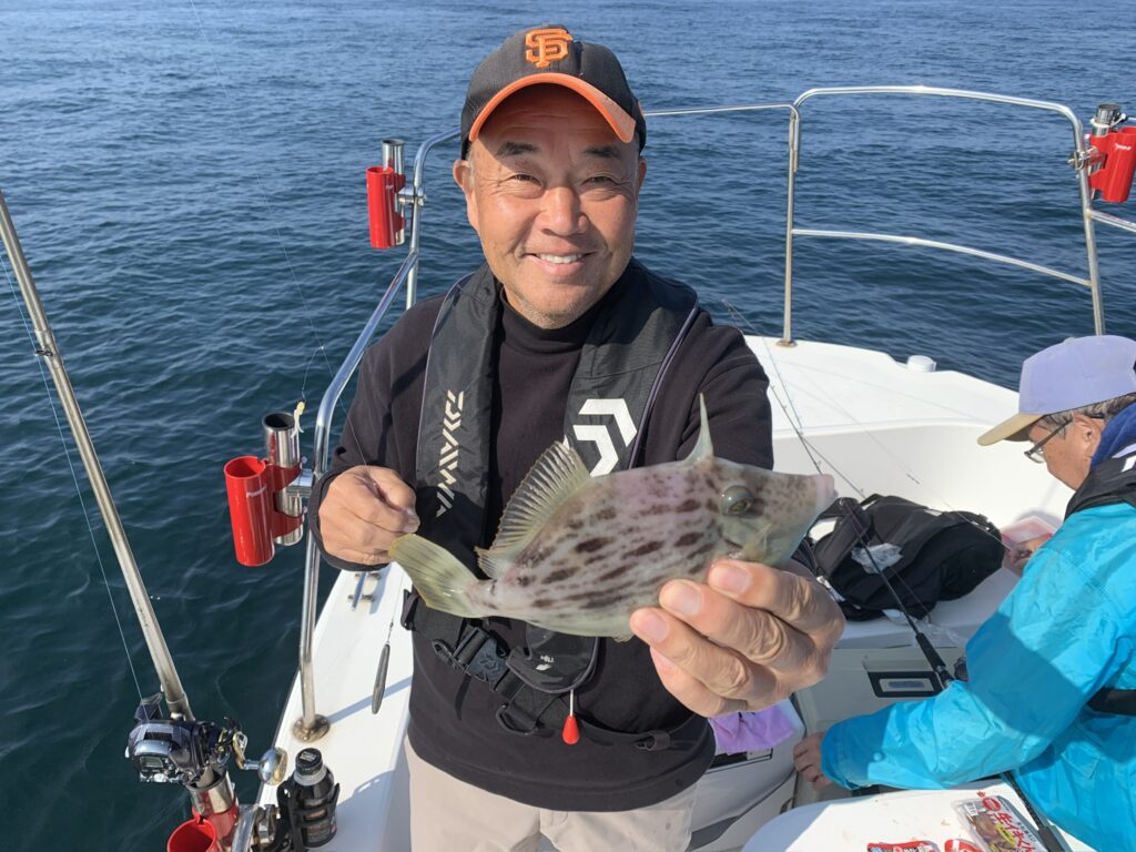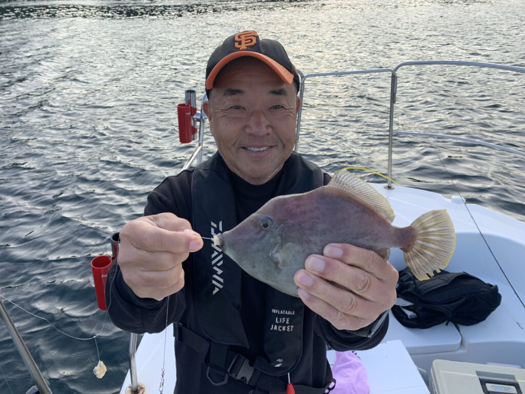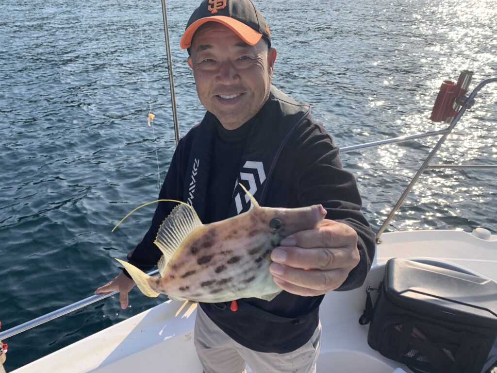 皆さまにエサ取り名人との駆け引きを時間一杯楽しんで頂き、トップの方は見事に『つ抜け』達成👌無事に良型丸ハギを全員安打して頂き、予定通り12時に納竿とし帰港致しました🛥️💨