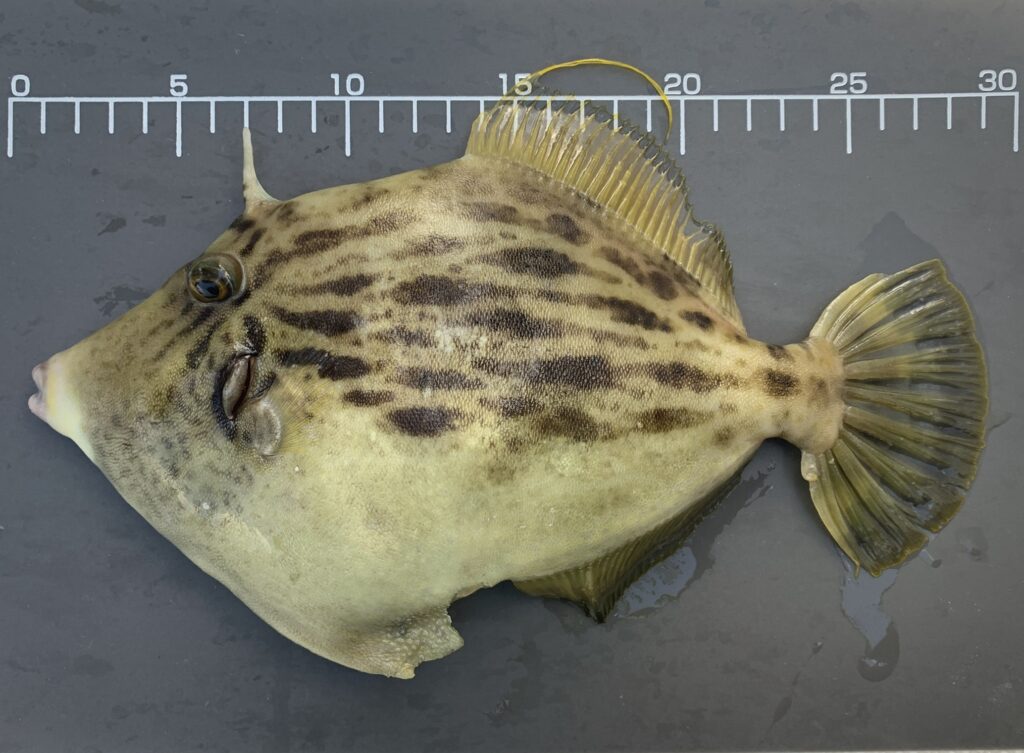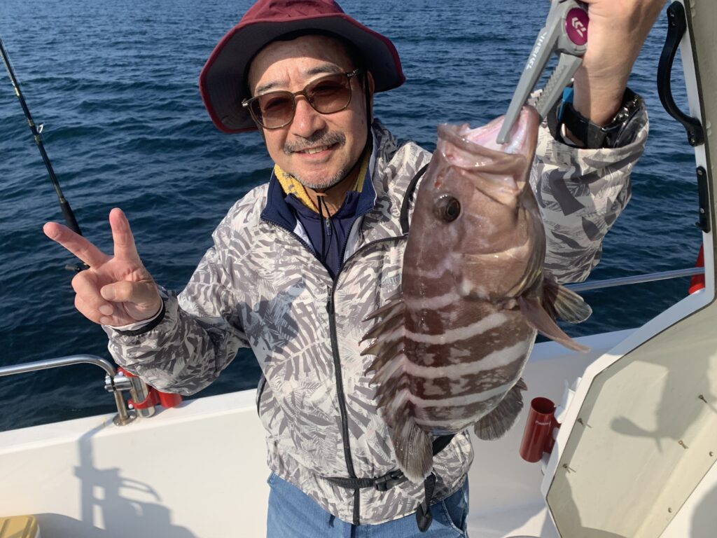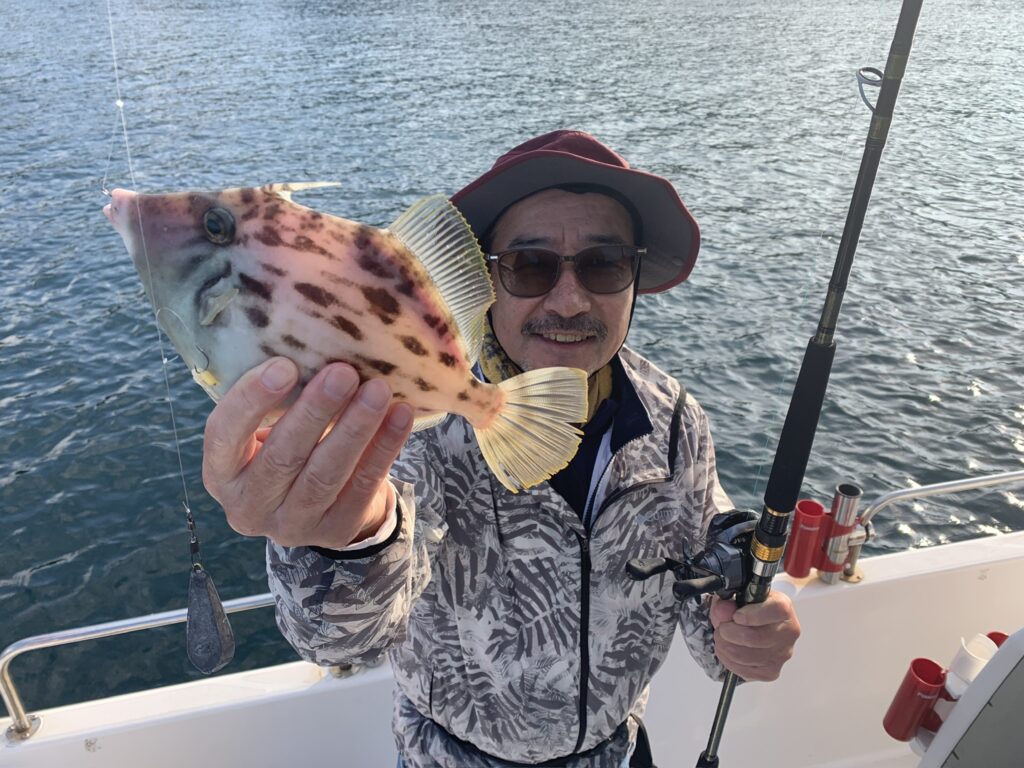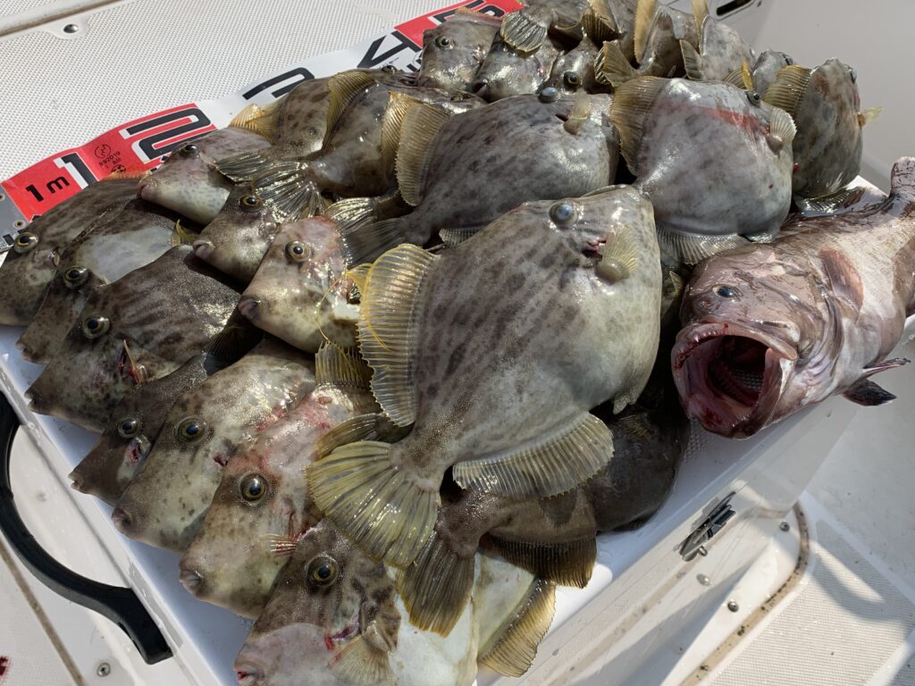 本日の釣果は船中、丸ハギ35匹(最大29cm)・マハタ1匹(42cm)・キュウセンベラ・トラギス多数でした🎣