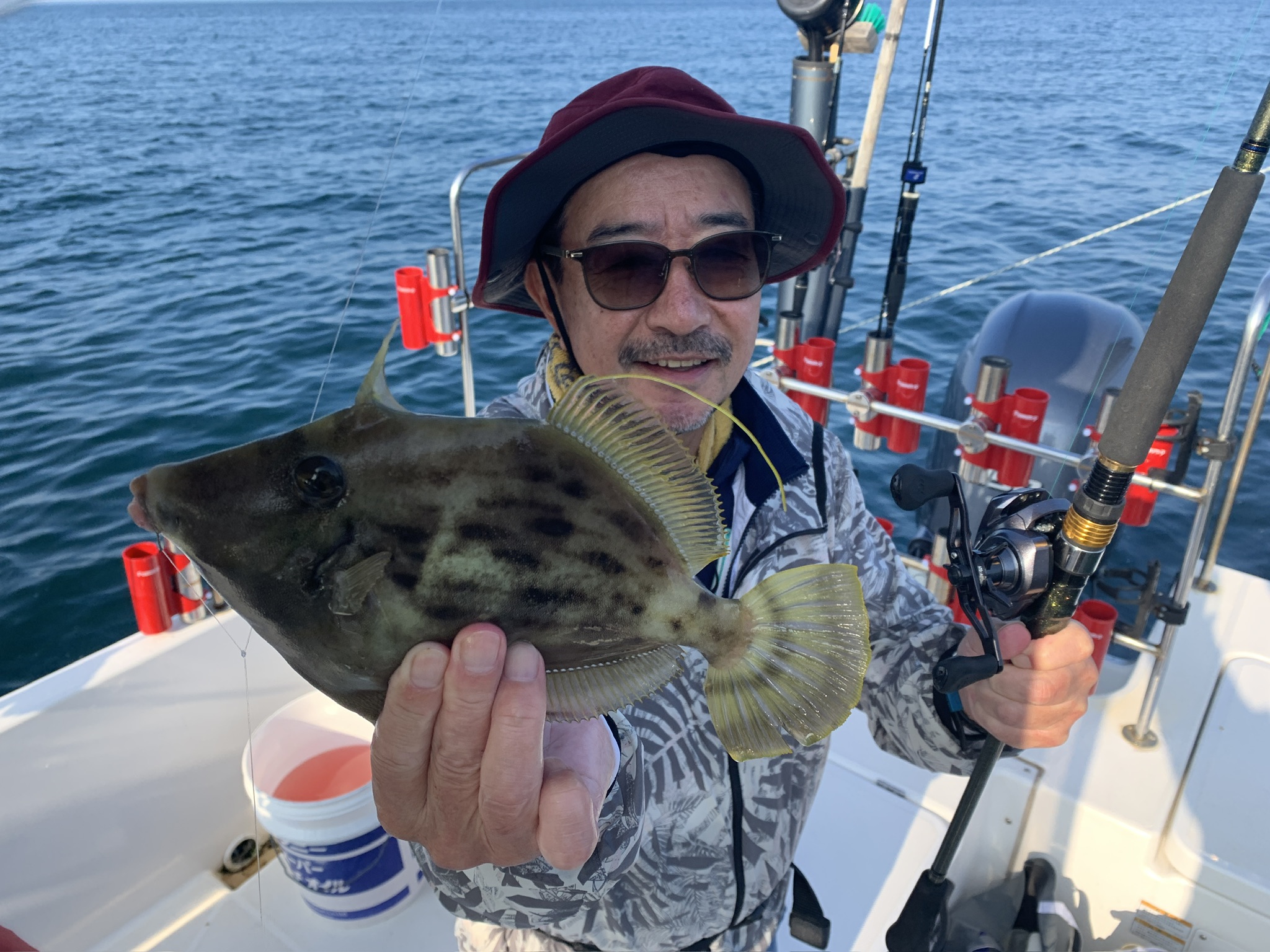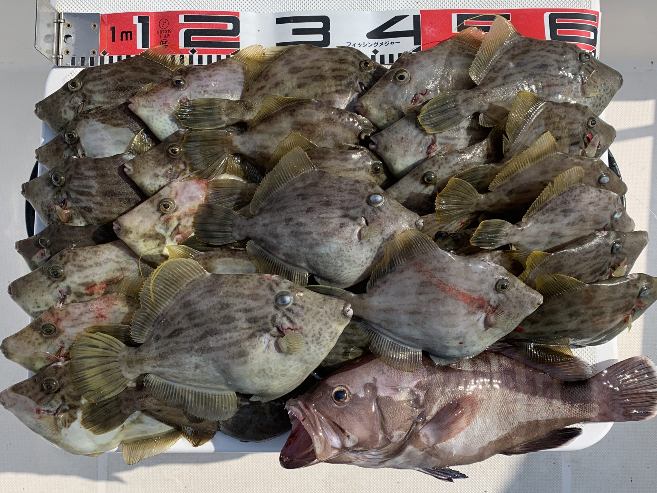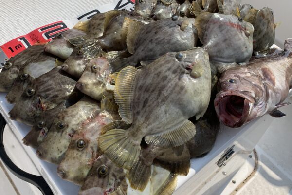 本日の釣果は船中、丸ハギ35匹(最大29cm)・マハタ1匹(42cm)・キュウセンベラ・トラギス多数でした🎣