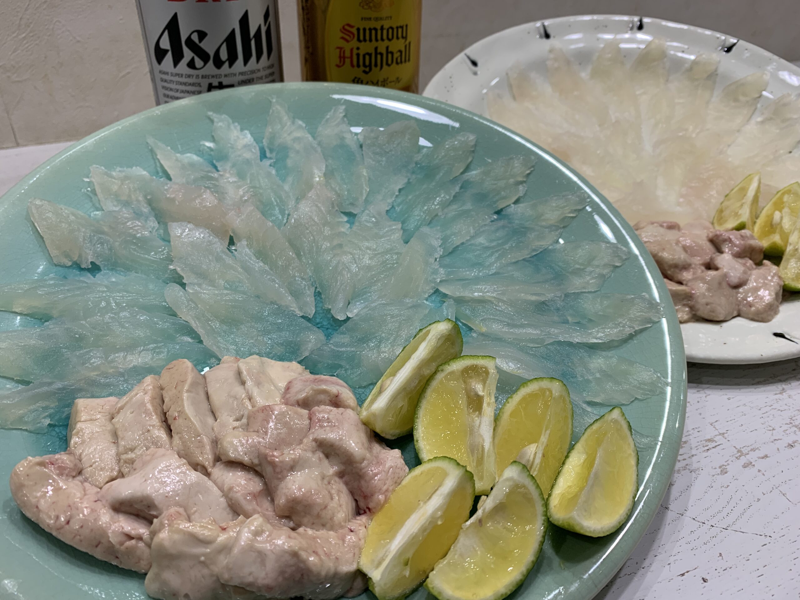 我が家もさっそく釣れたての丸ハギを持ち帰り、丸ハギ3匹分で薄造り2皿にたっぷりと生肝を添え、アラを軽く炙りしっかりと出汁をとってお汁を作り家族皆んなで美味しく頂きました🍺