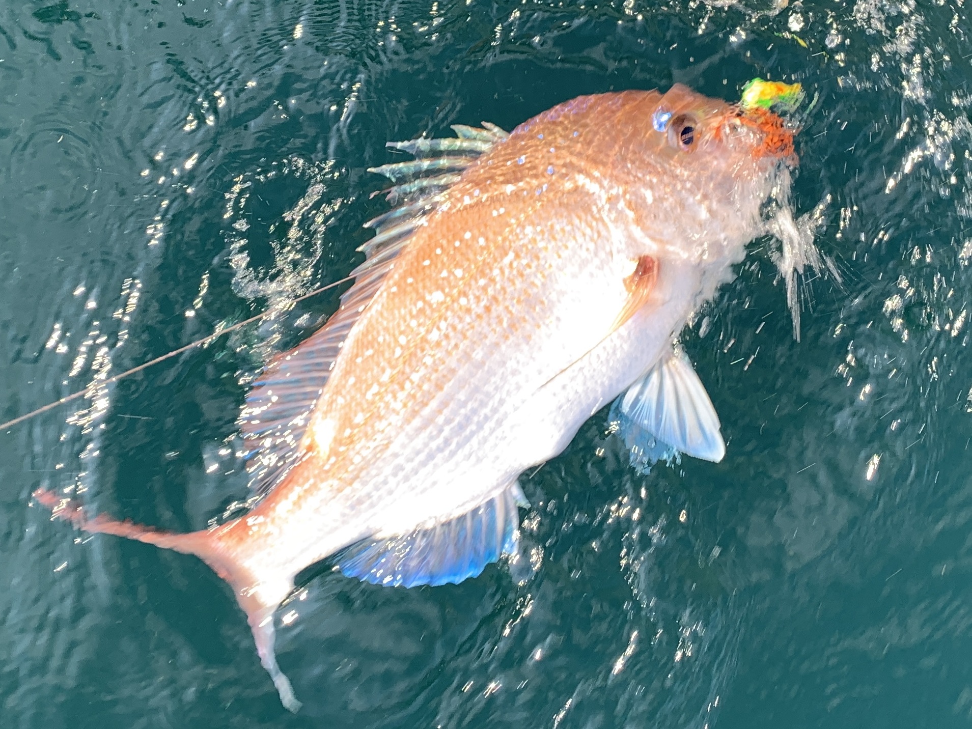本日の釣果は船中、マダイ2匹(最大50cm)・サワラ1匹(76cm)でした🎣