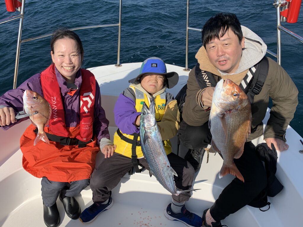 皆さま本日初タイラバチャレンジでしたがファミリーフィッシングチャーターならではの、周りの目を気にする事無くご家族だけでの船釣りを時間一杯楽しんで頂き、見事に10歳の息子さまが大活躍で今日イチのサワラやマダイを釣り上げて頂き、予定通り12:30頃に納竿とし帰港致しました🛥️💨