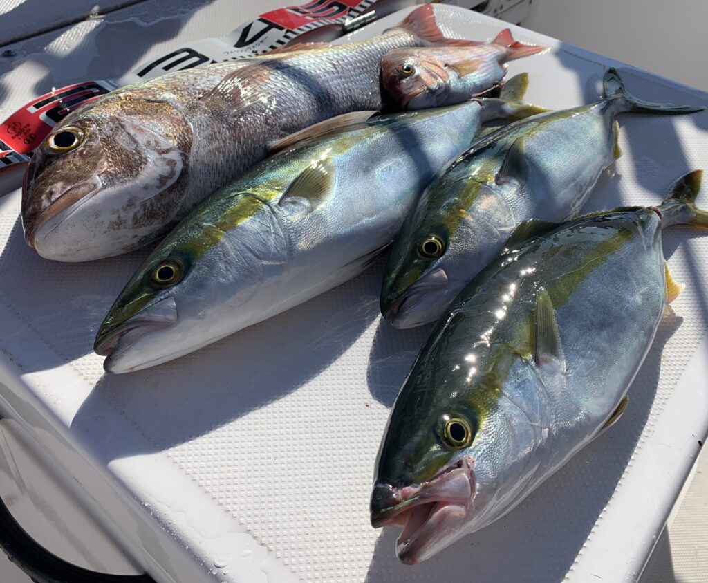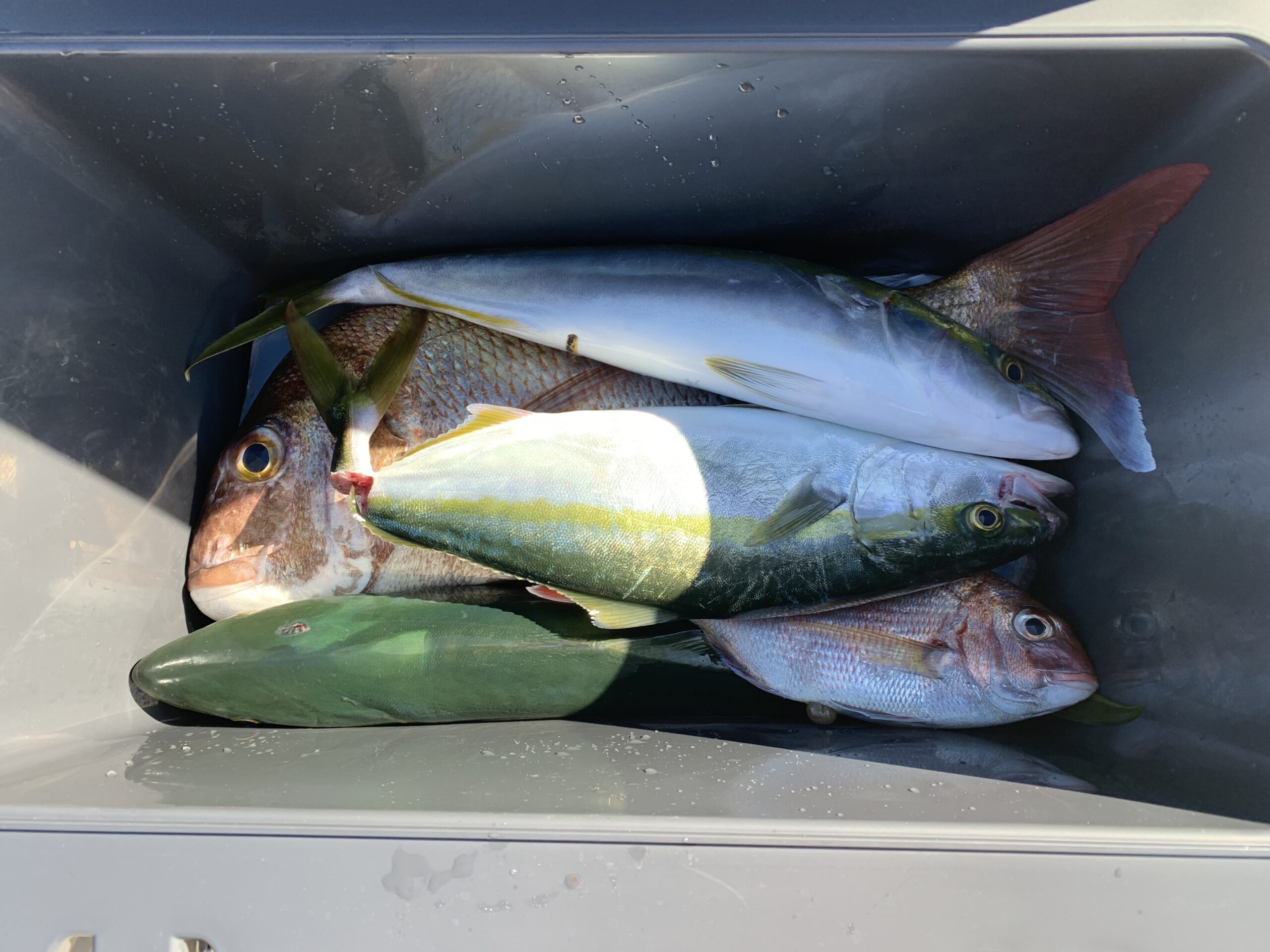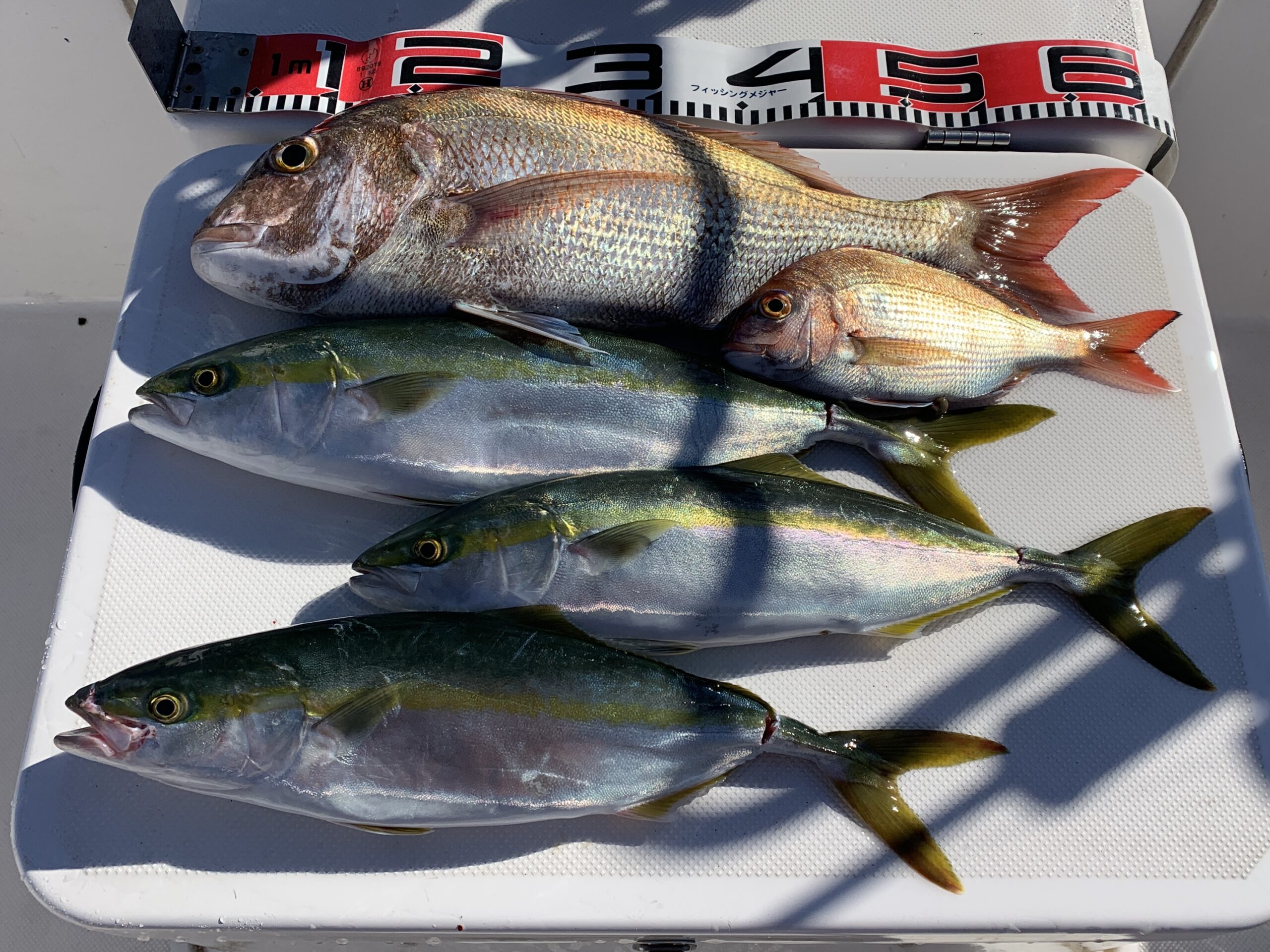 本日の釣果は船中、ヤズ3匹(最大50cm)・マダイ2匹(最大60cm)でした🎣