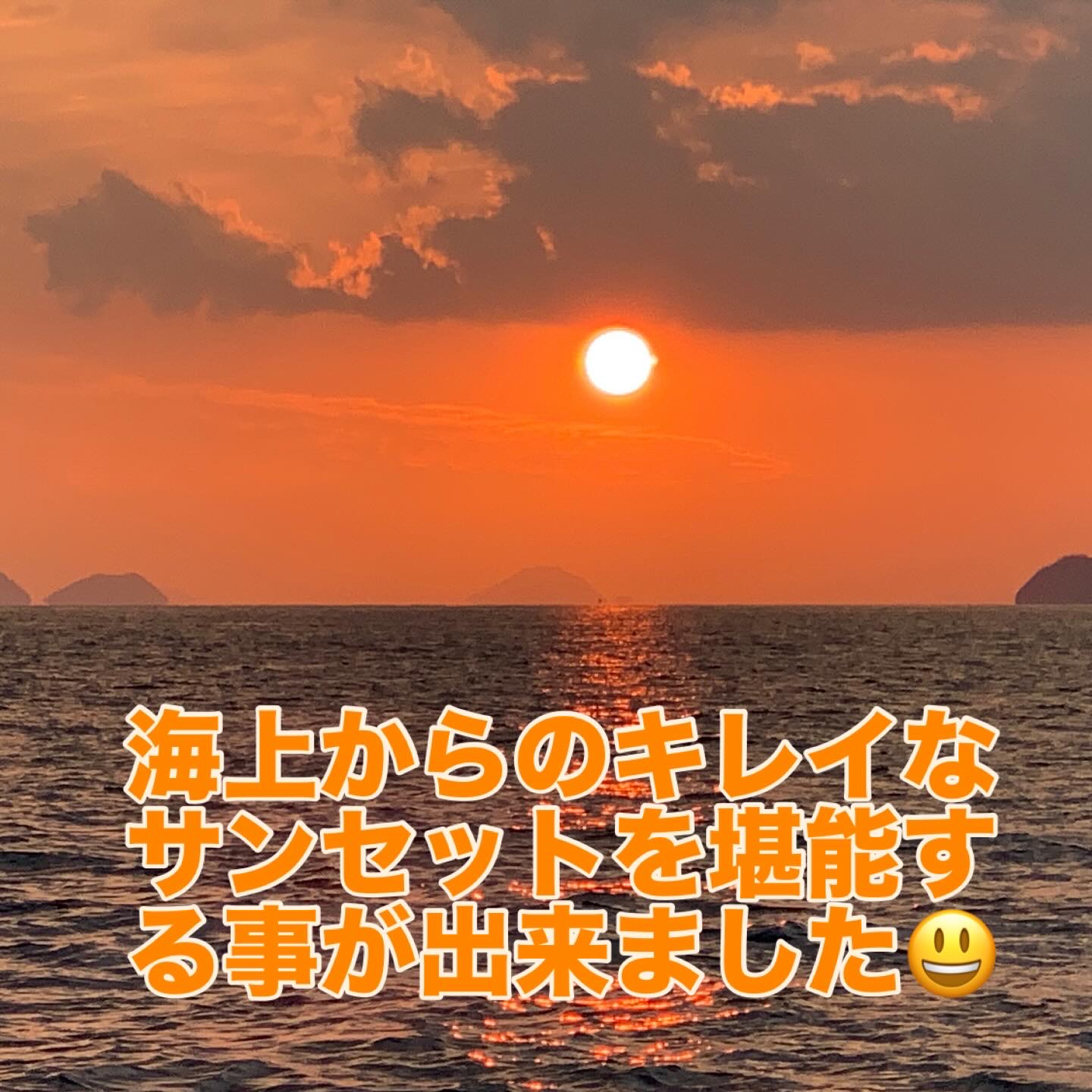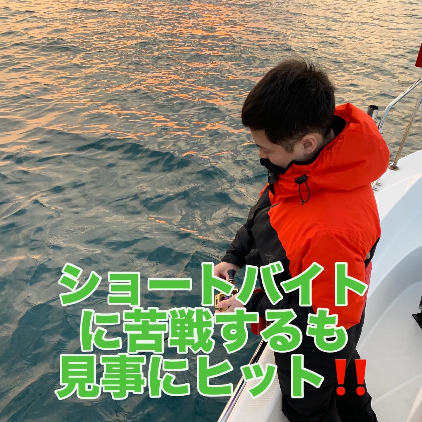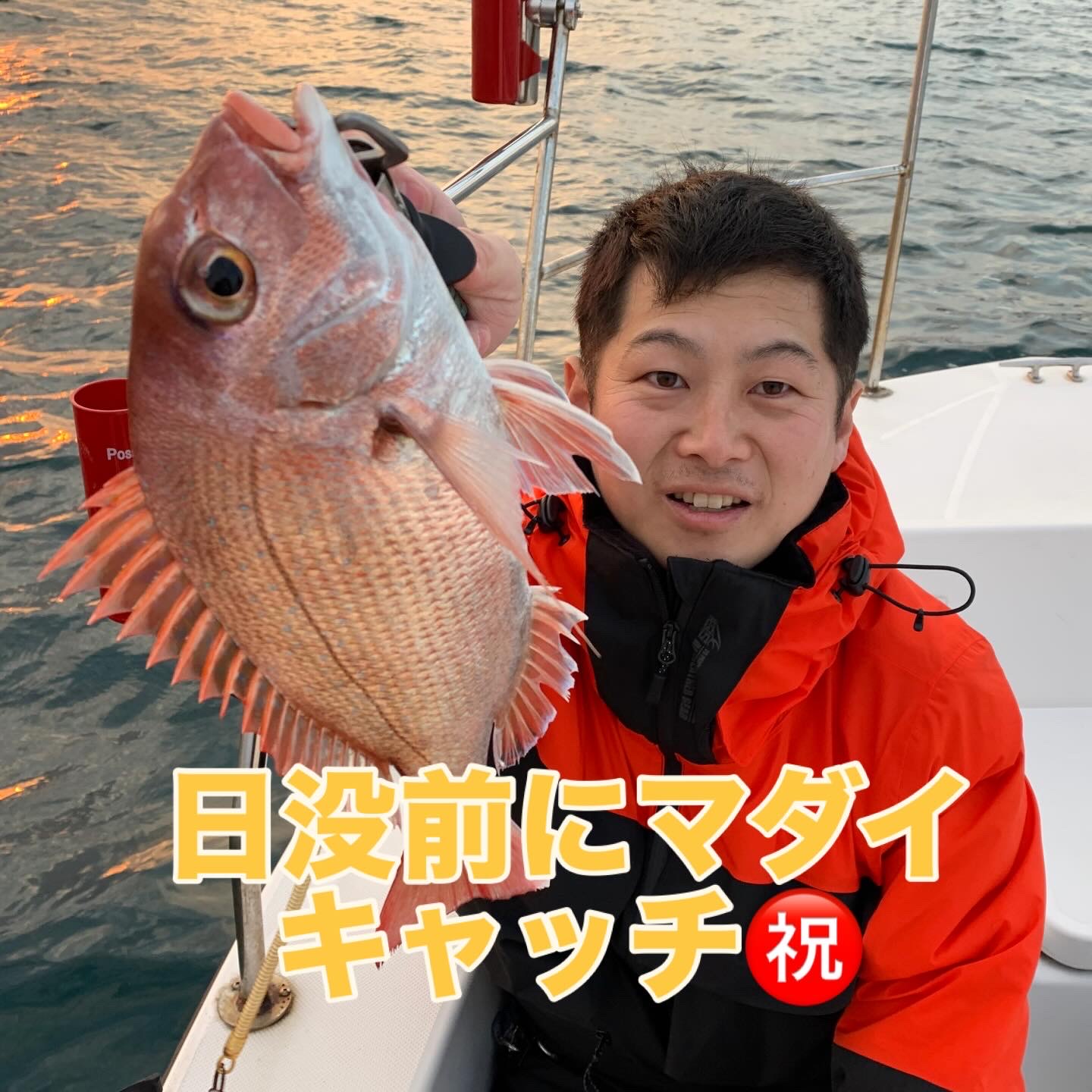 お客さまのご都合により14時前から日没までの短時間釣行となりましたが、時間一杯皆さまにタイラバフィッシングを楽しんで頂き、綺麗なサンセットを眺めながら良型マダイを釣り上げて頂き、夕陽が水平線に沈んだ日没後に納竿とし帰港致しました👌