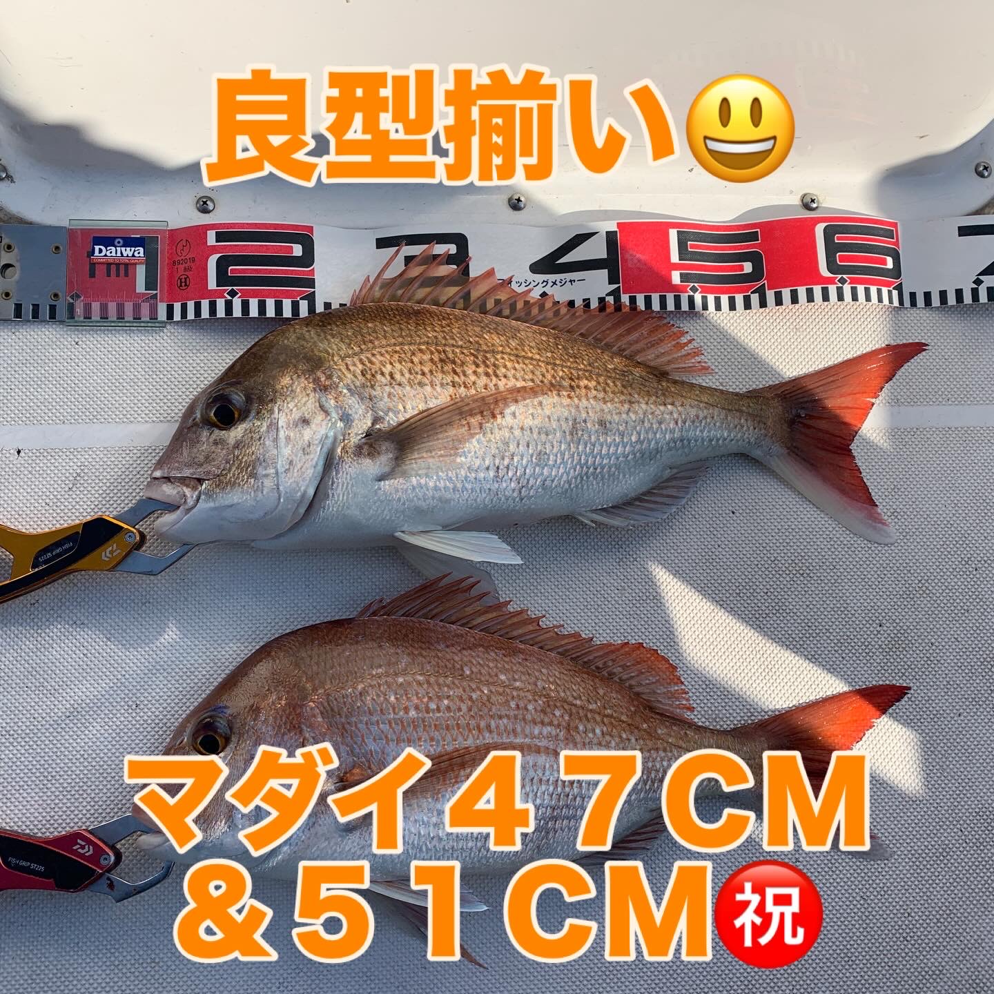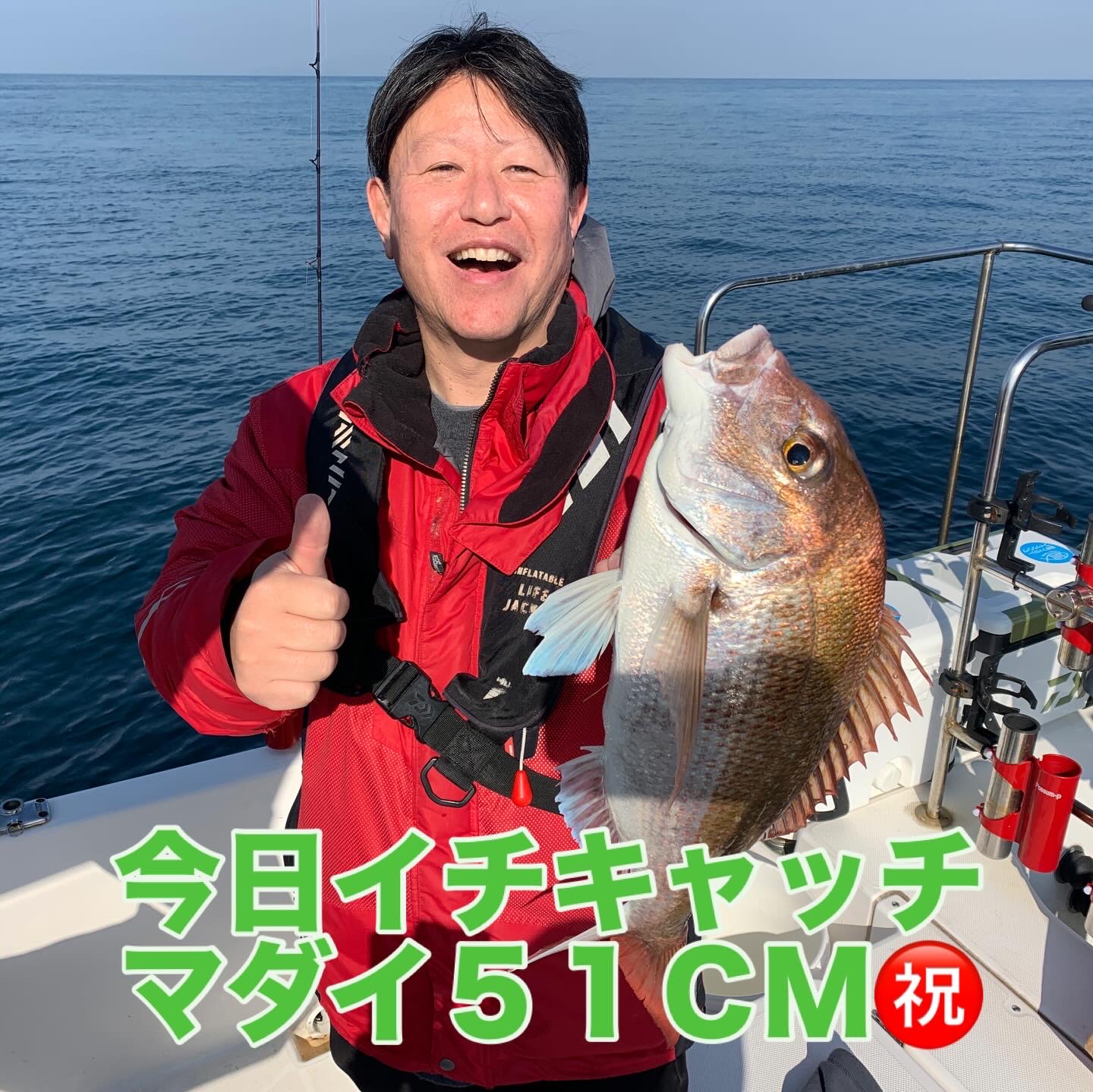 本日の釣果は船中、マダイ3匹(最大51cm)でした🎣