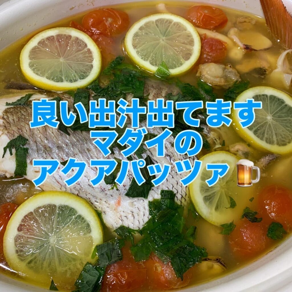 早速帰宅してから釣れたてのマダイを使ってマダイの姿盛りやアクアパッツァ等を作り、今日の参加メンバーで美味しく頂きました🍻