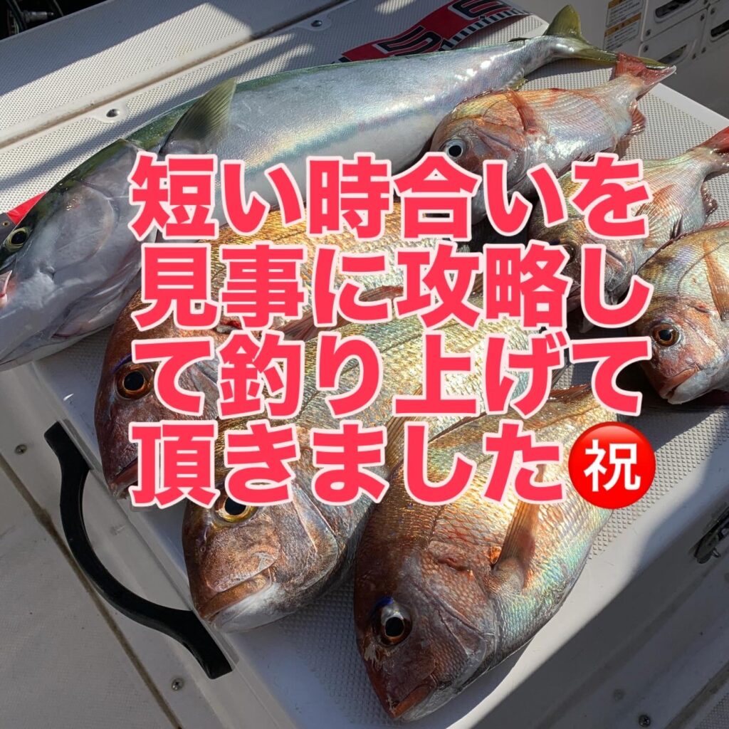 潮のタイミングに合わせポイントをテンポ良く回り、皆さまに時間一杯タイラバフィッシングを楽しんで頂き、見事に狙いの良型マダイや嬉しいゲストのメジロを釣り上げて頂く事が出来ました👌