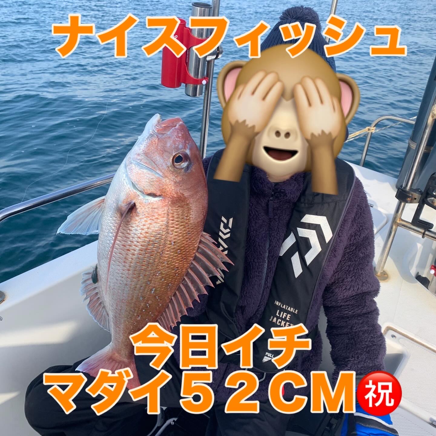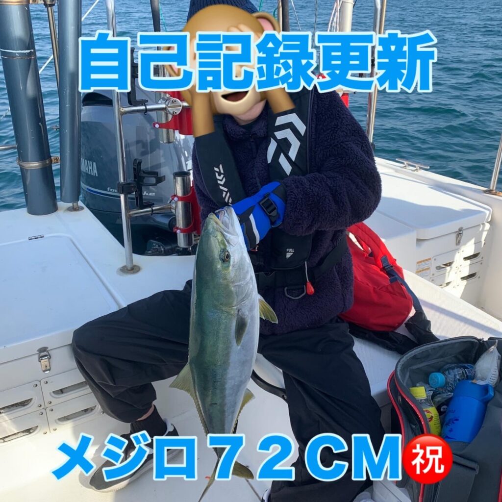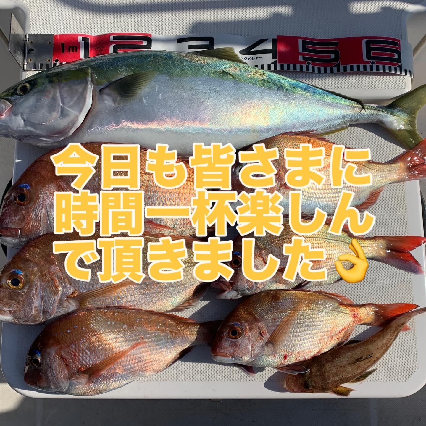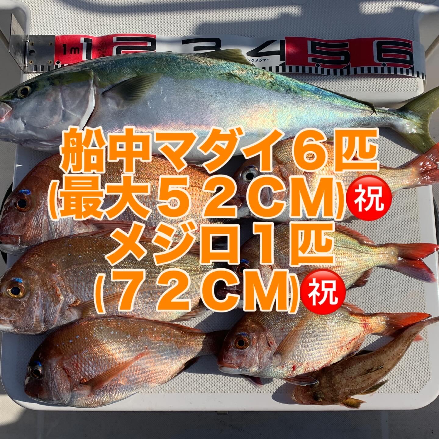 本日の釣果は船中、マダイ6匹(最大52cm)・メジロ1匹(72cm)でした🎣