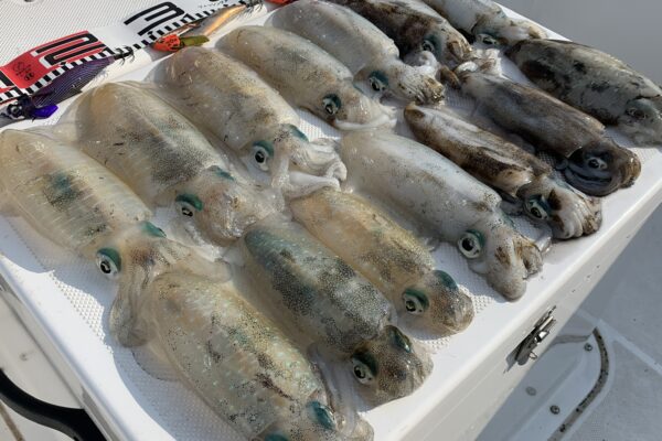 本日の釣果は船中、アオリイカ13杯(最大510g)・紋甲イカ1杯(500g)でした🦑