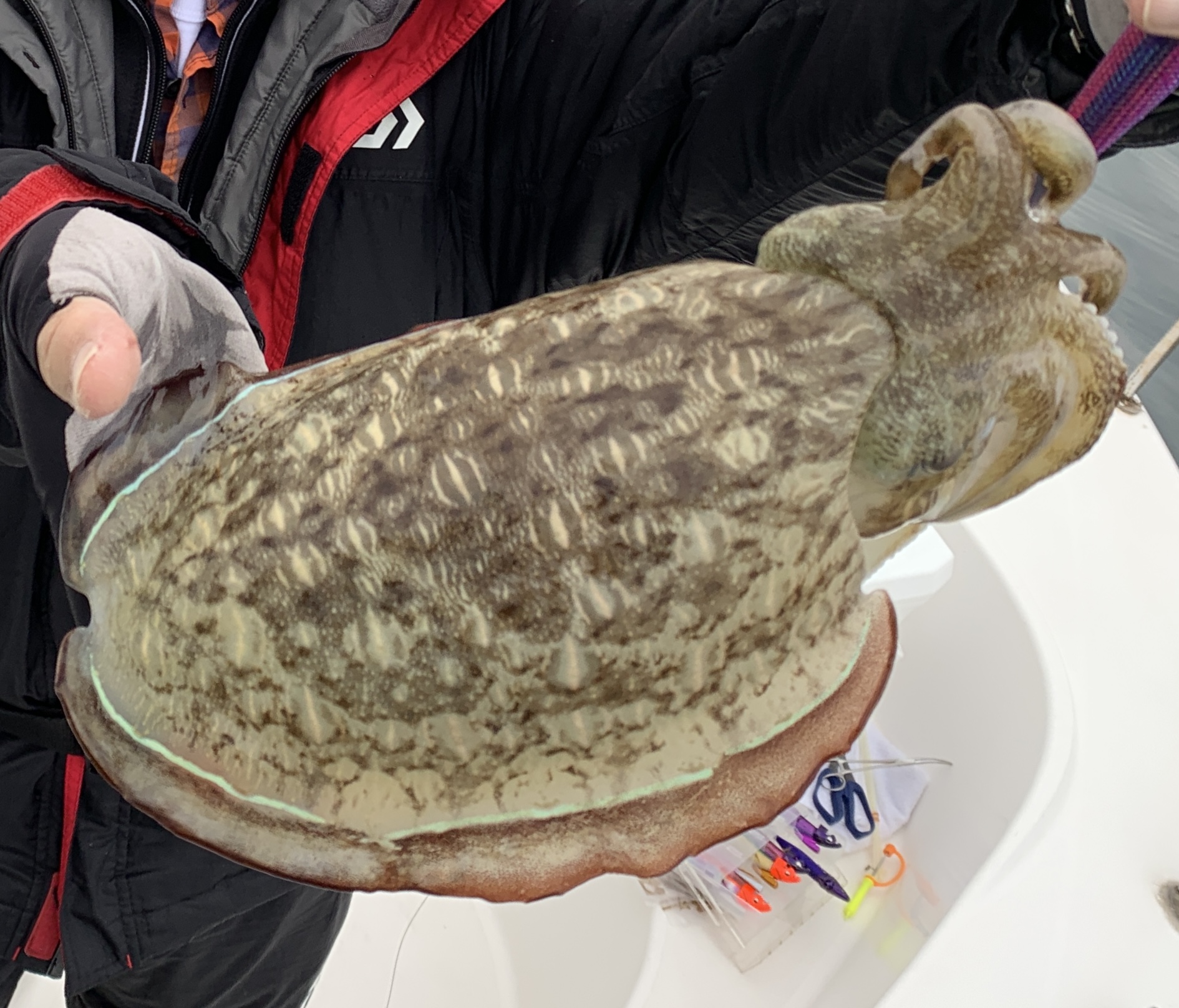 本日の釣果は船中、紋甲イカ7杯(最大1,120g)でした🦑
