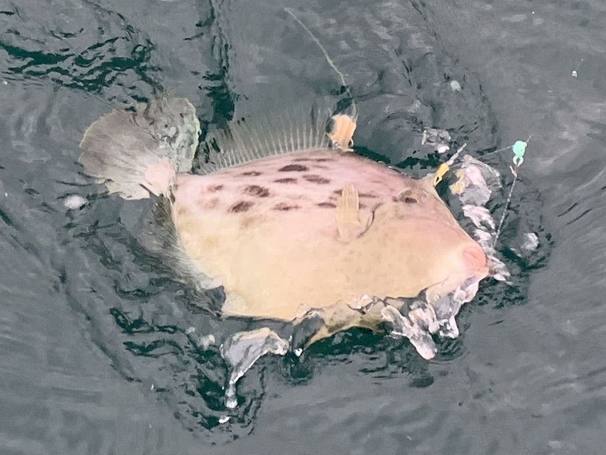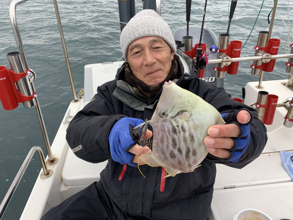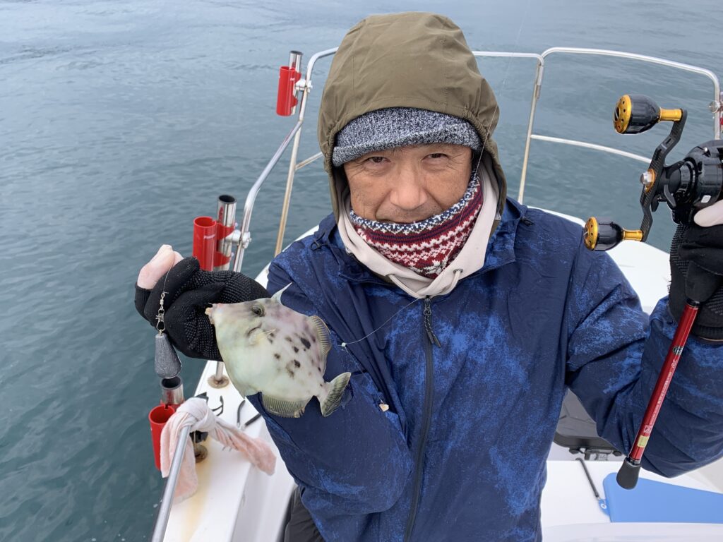 今日は朝から強風&高波でとても釣り難い中での釣行となりました💦安全第一で風裏ポイント中心のチャレンジとなりましたが、皆さまには時間一杯タイラバ&エサ取り名人との駆け引きを楽しんで頂き、何とか狙いの丸ハギは全員安打して頂く事が出来ました😅
