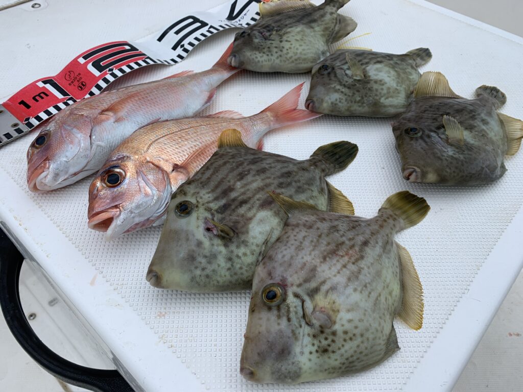 本日の釣果は船中、マダイ5匹(最大30cm・リリース含み)・丸ハギ10匹(最大25cm・リリース含み)・キュウセンベラ・トラギス多数でした🎣