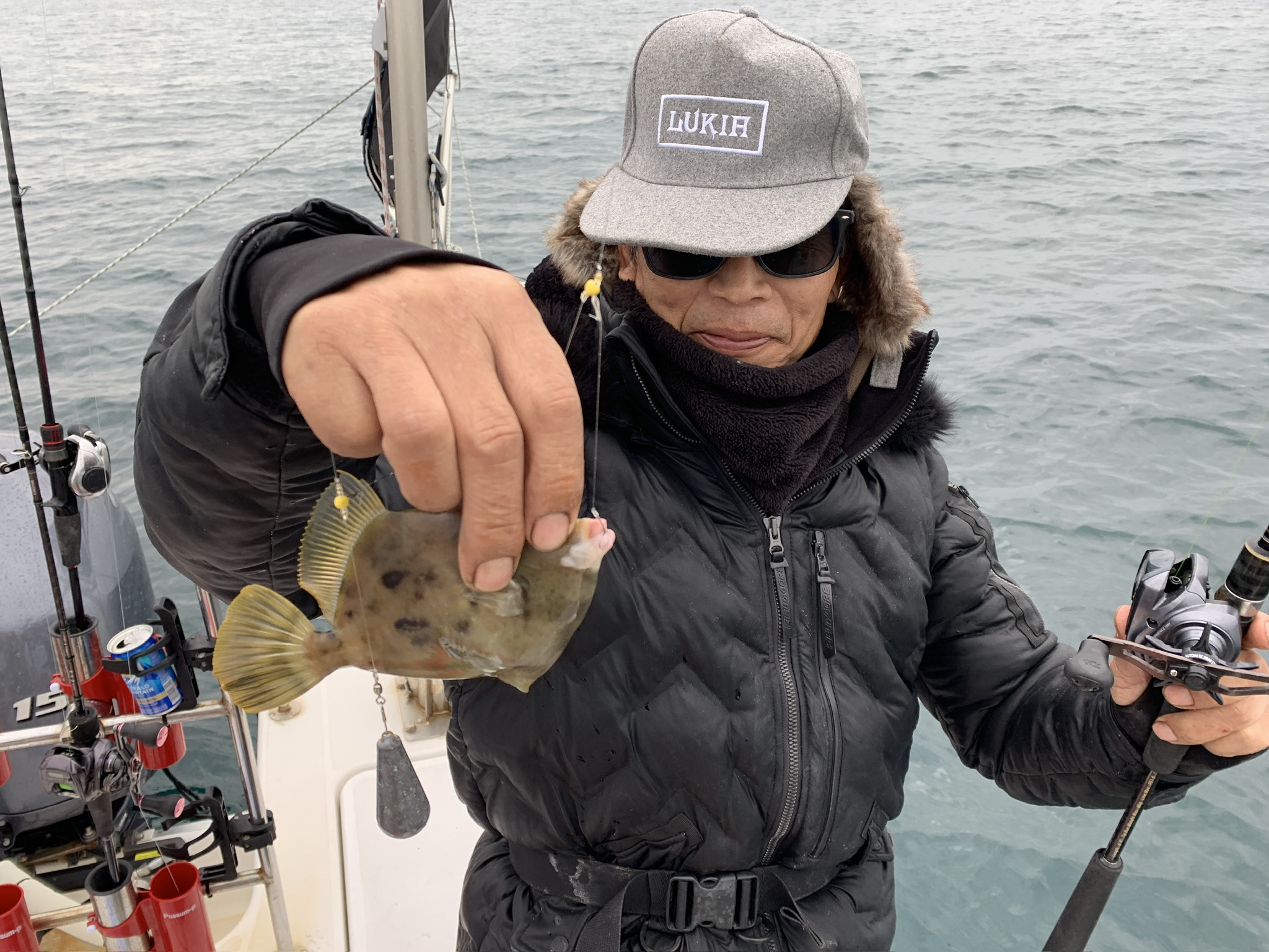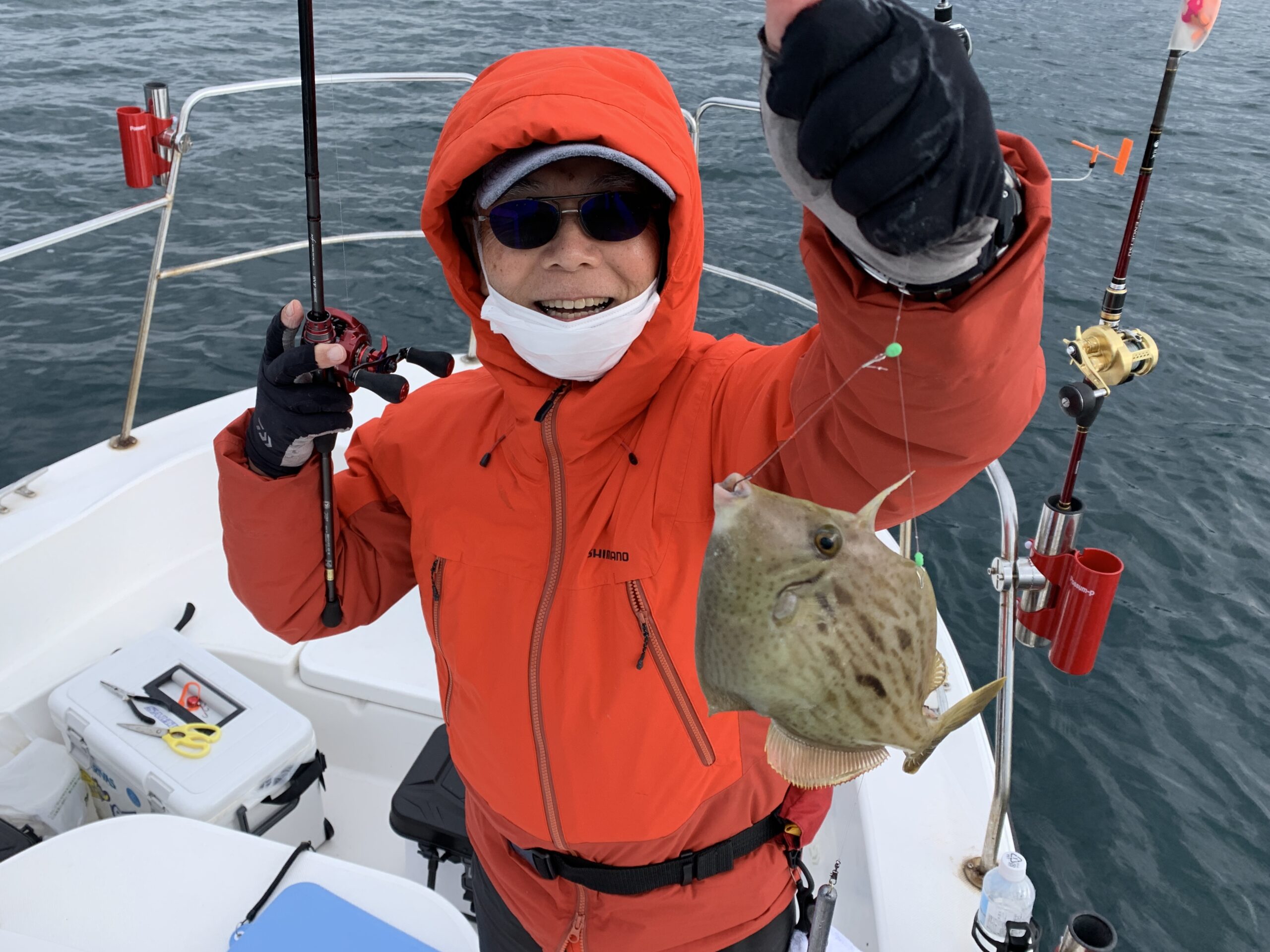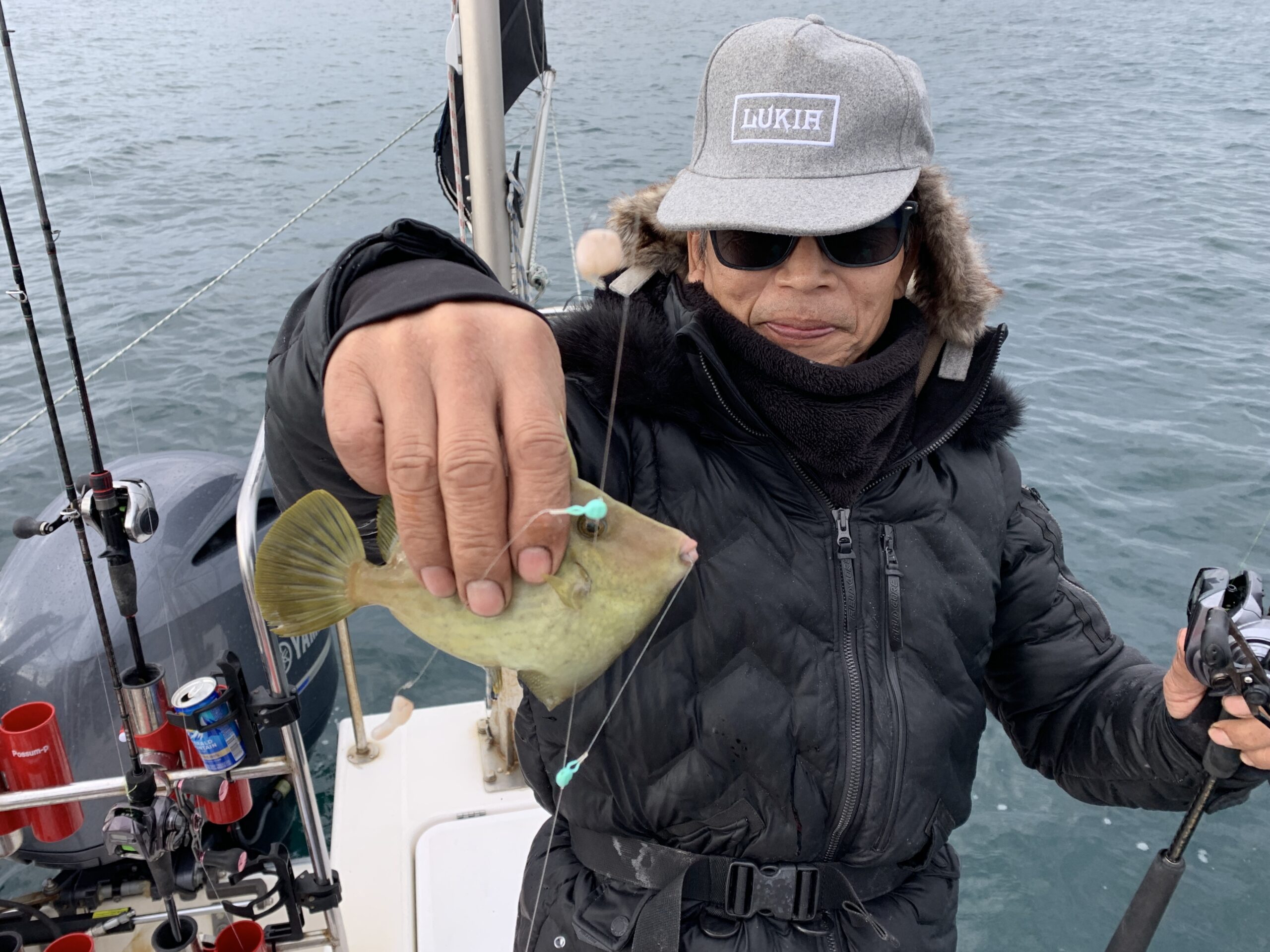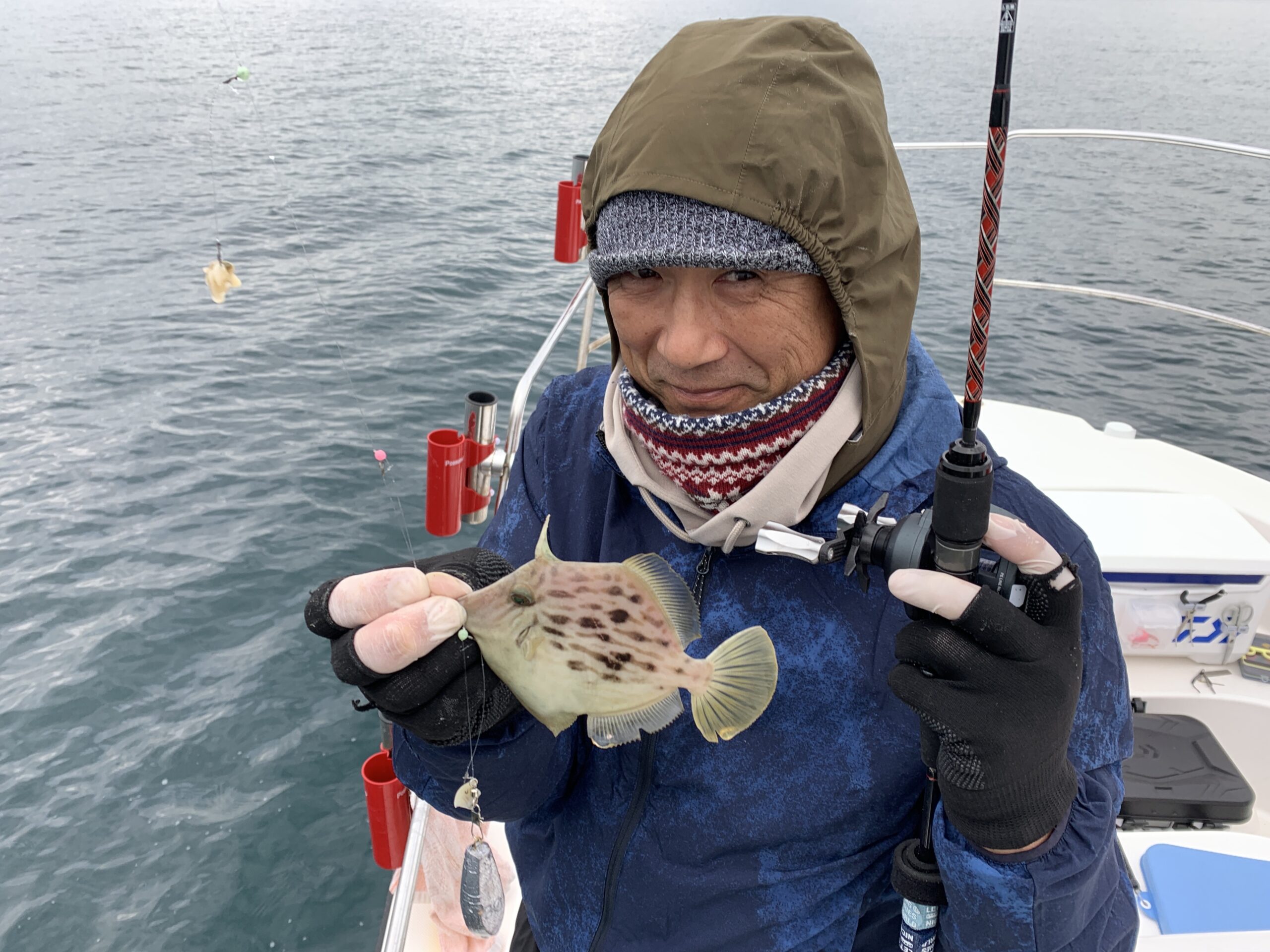 今日は朝から強風&高波でとても釣り難い中での釣行となりました💦安全第一で風裏ポイント中心のチャレンジとなりましたが、皆さまには時間一杯タイラバ&エサ取り名人との駆け引きを楽しんで頂き、何とか狙いの丸ハギは全員安打して頂く事が出来ました😅