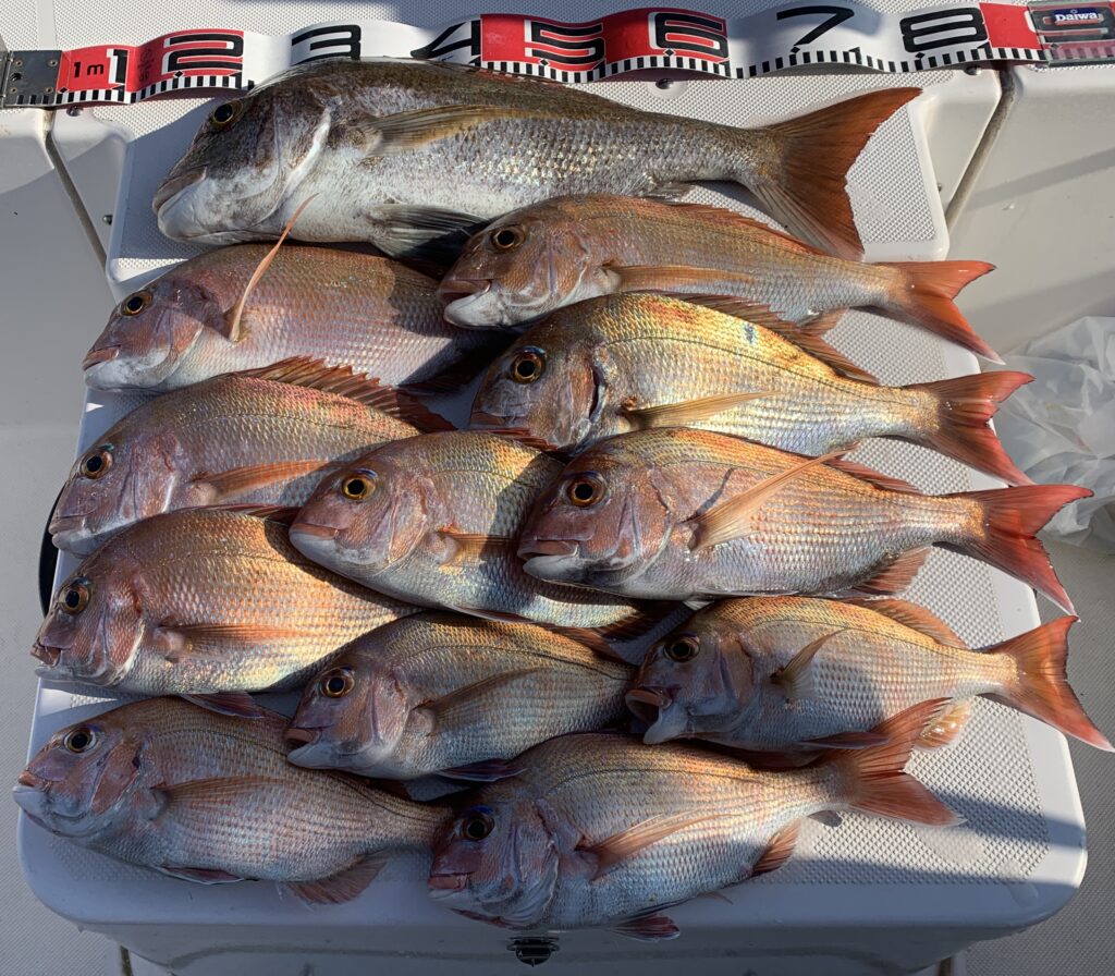 本日の釣果は船中、マダイ12匹(最大60cm)でした🎣