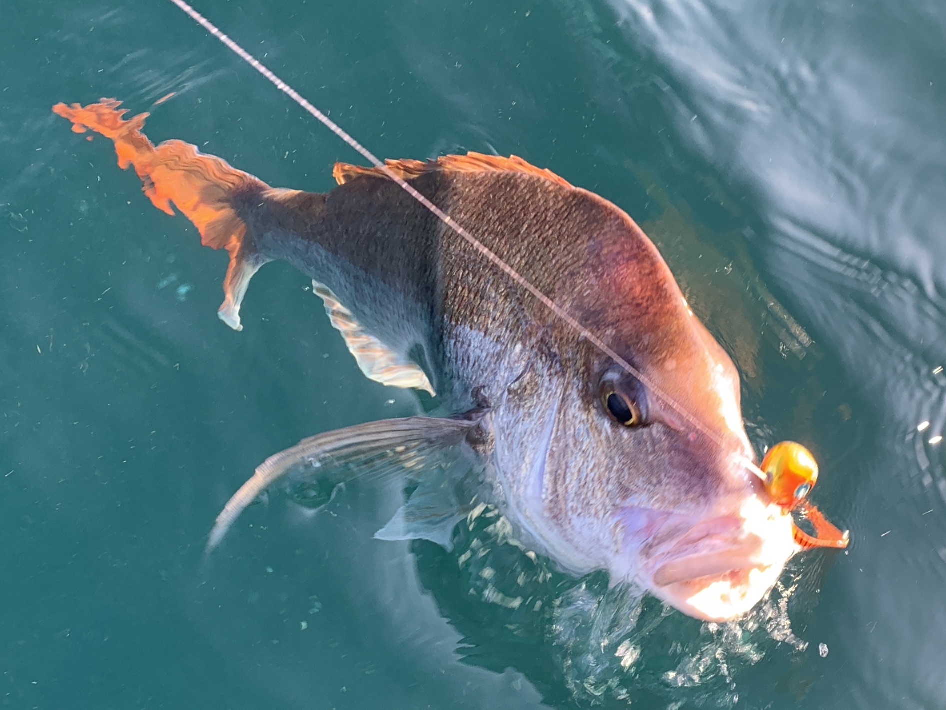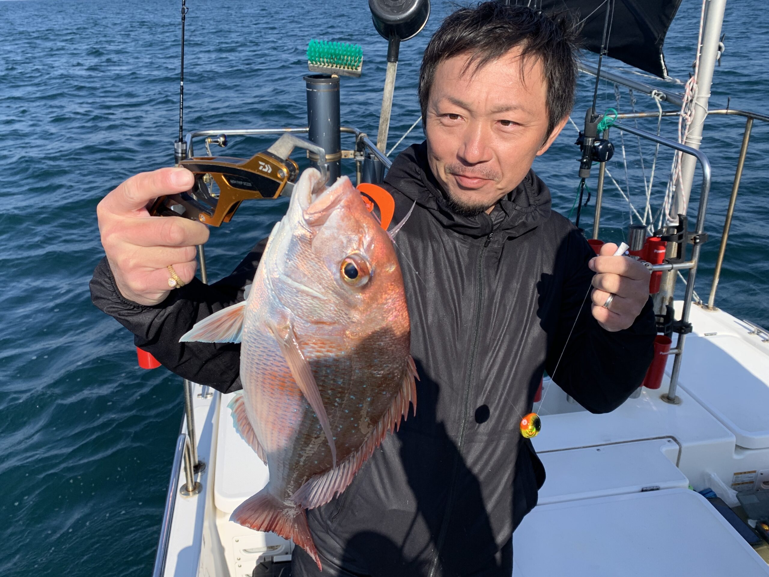 潮のタイミングに合わせテンポ良くポイントを回り、時合いに入ると毎流し誰かがマダイをヒット👌何度か船中ダブルヒット等も有りながら皆さまに時間一杯タイラバを楽しんで頂き、無事に良型マダイを全員安打で釣り上げて頂く事が出来ました👌