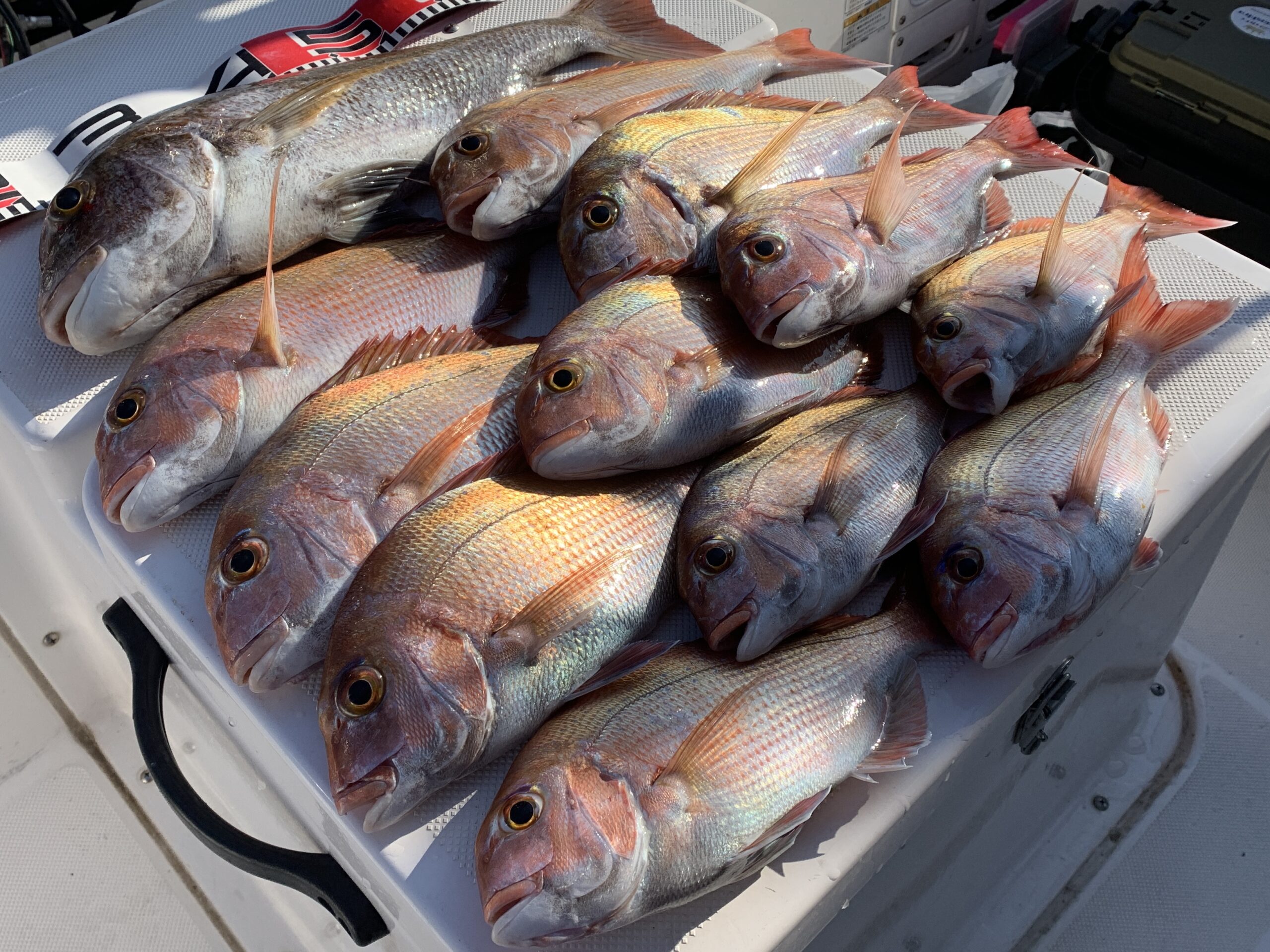 本日の釣果は船中、マダイ12匹(最大60cm)でした🎣