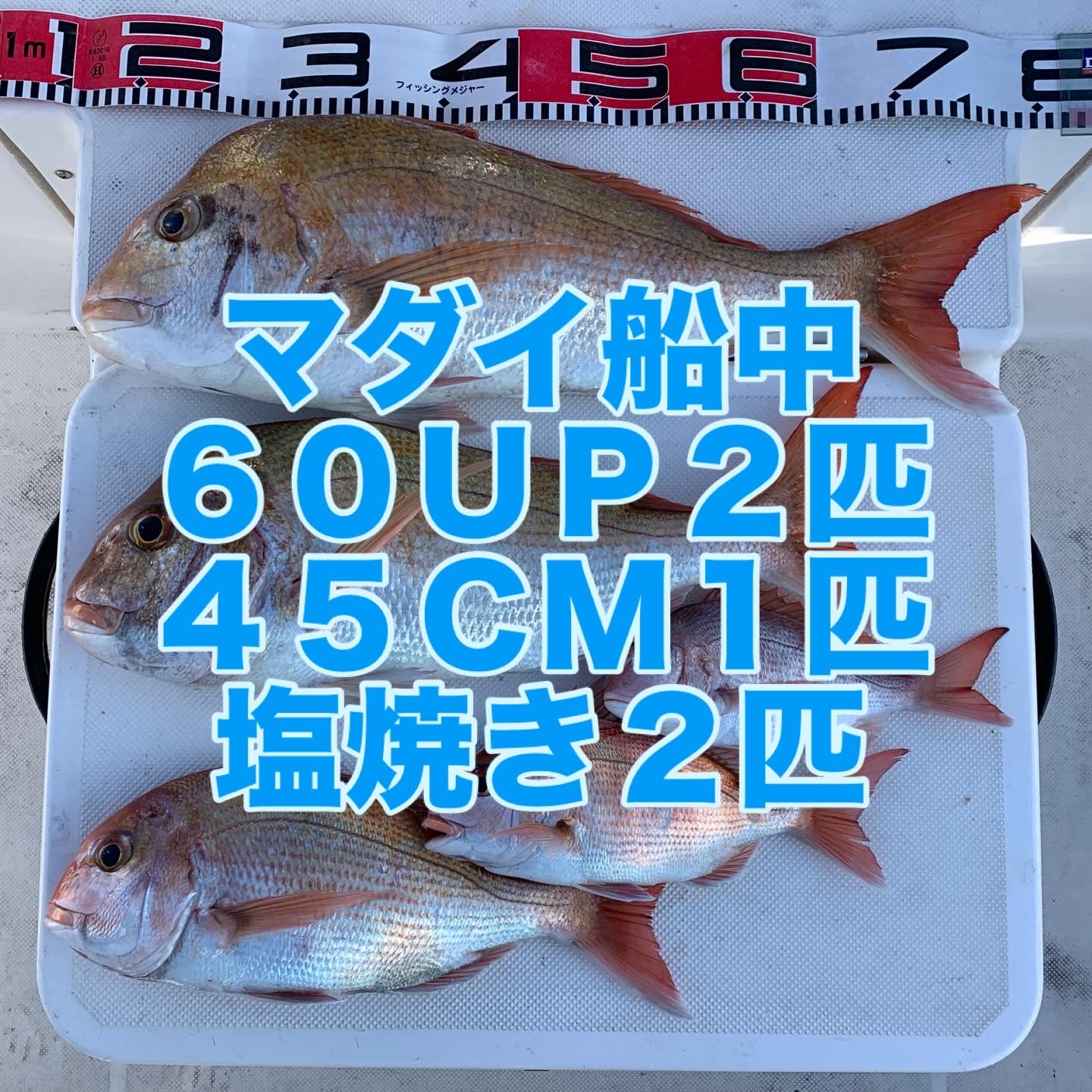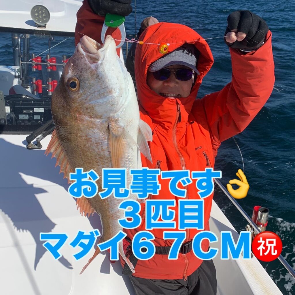 本日の釣果は船中、マダイ5匹(最大67cm)でした🎣