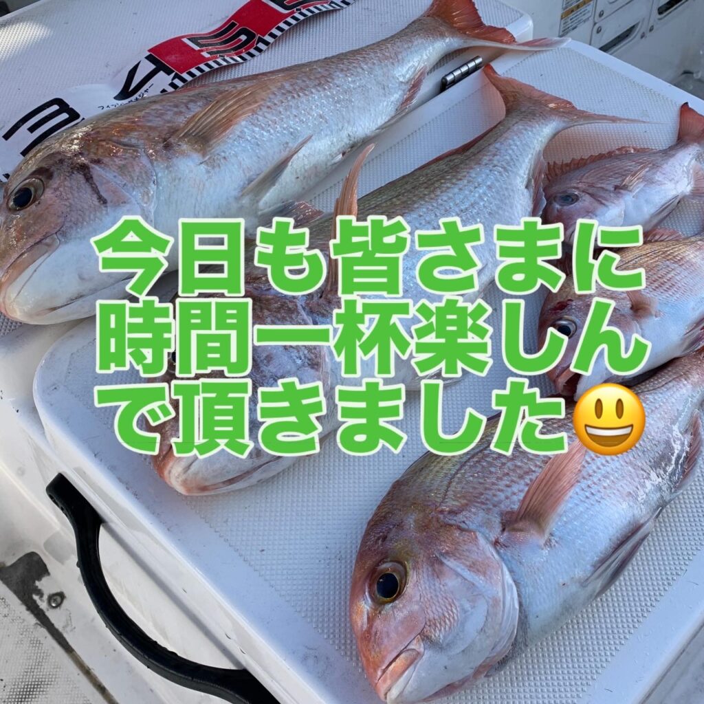 潮のタイミングに合わせポイントをテンポ良く回り、皆さまに時間一杯タイラバフィッシングを楽しんで頂き、見事に狙いの良型マダイを釣り上げて頂く事が出来ました👌