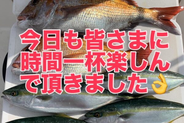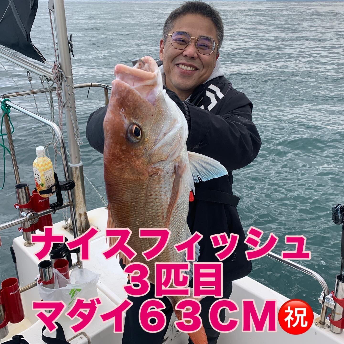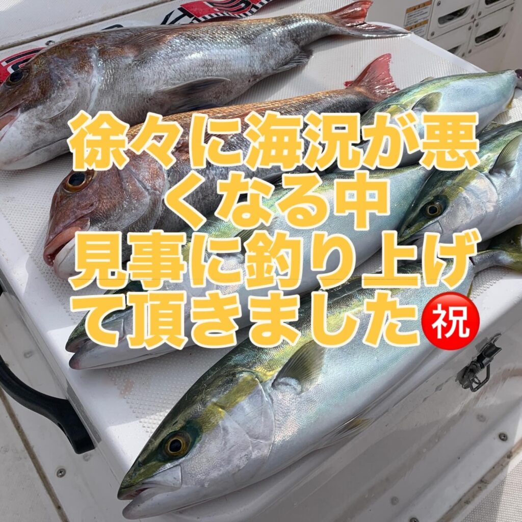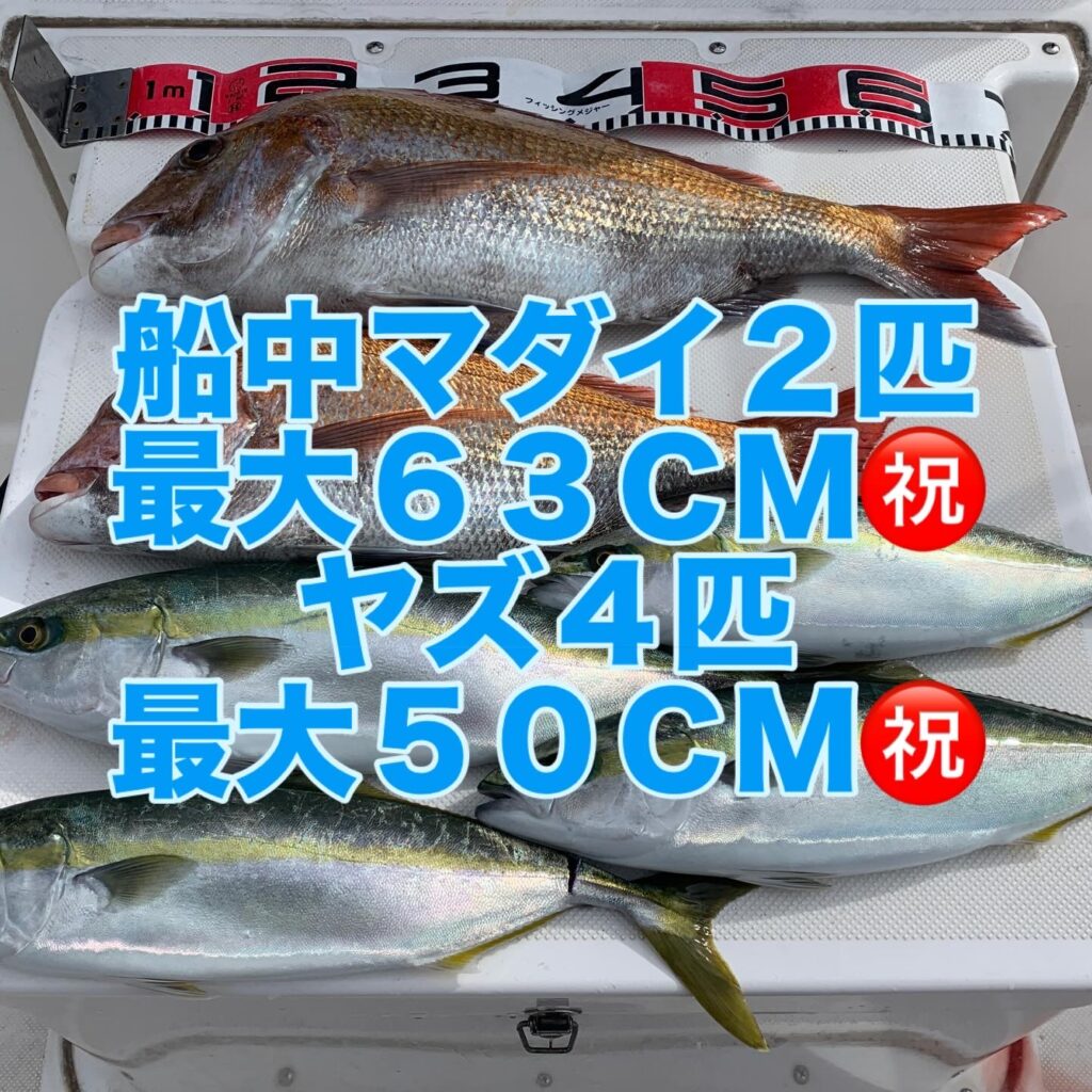 本日の釣果は船中、マダイ2匹(最大63cm)・ヤズ4匹(最大50cm)でした🎣