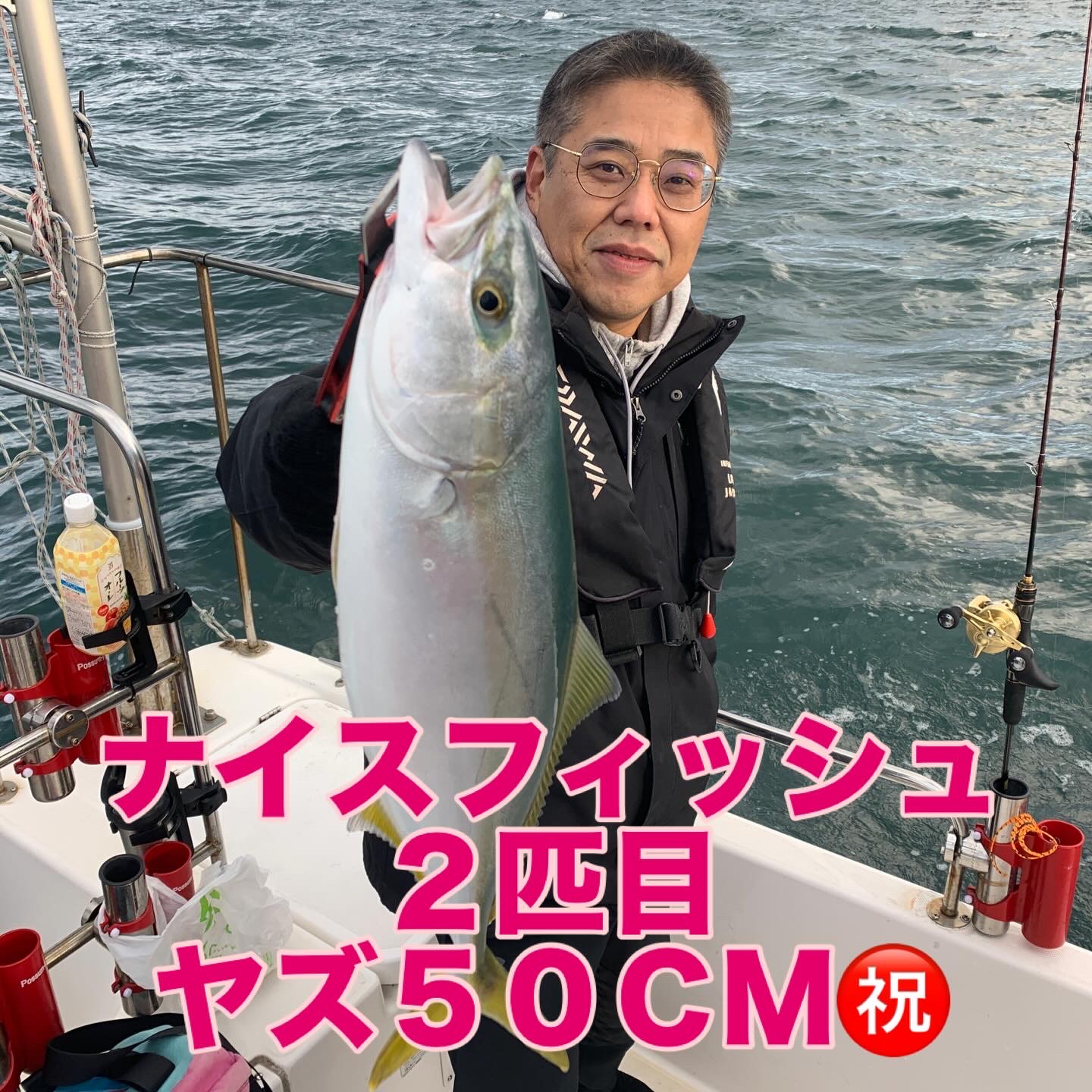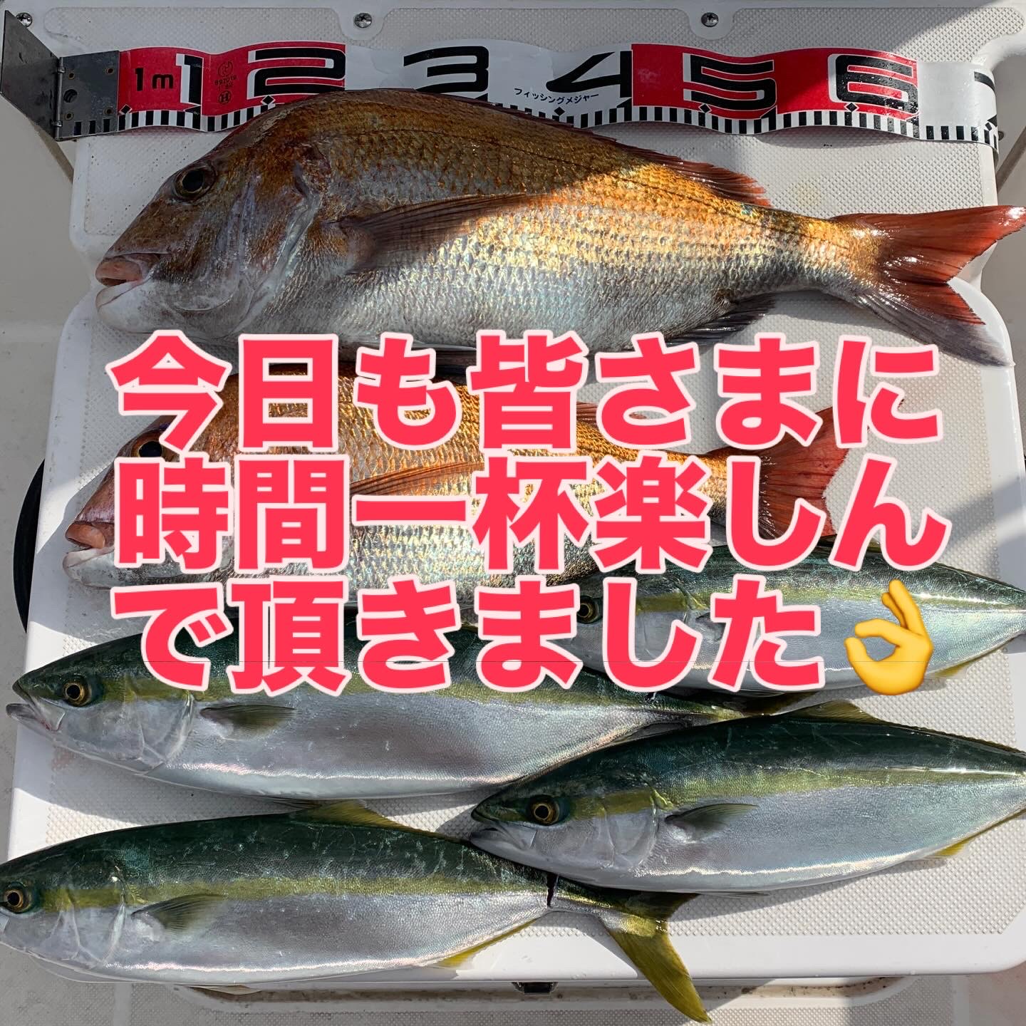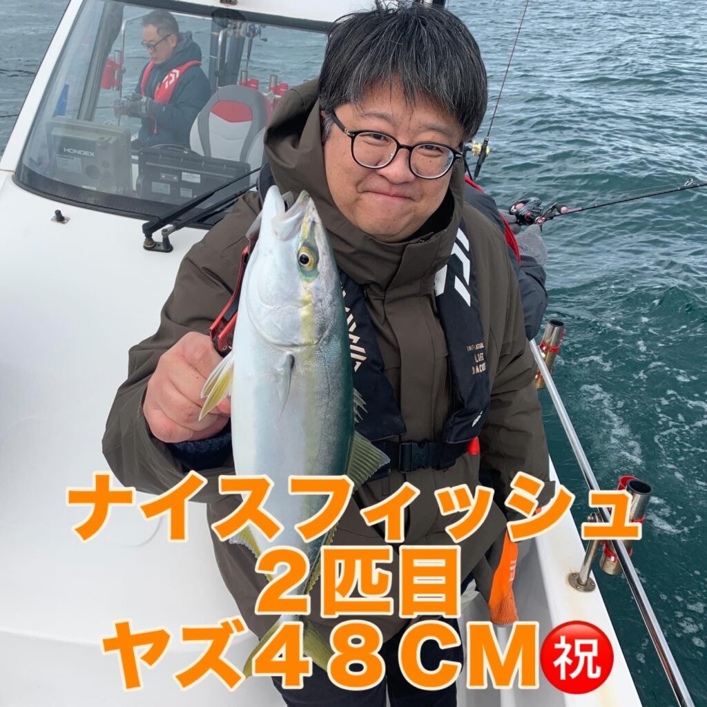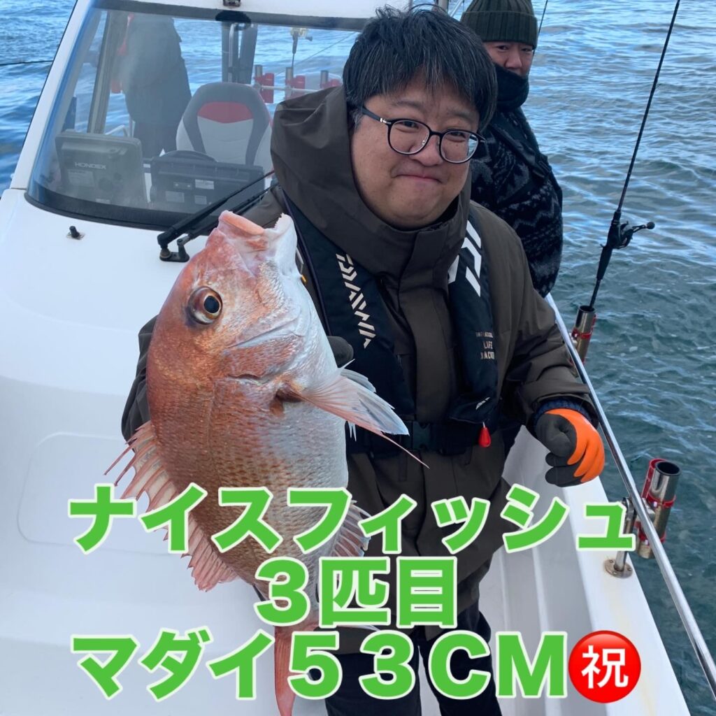本日の釣果は船中、マダイ2匹(最大63cm)・ヤズ4匹(最大50cm)でした🎣