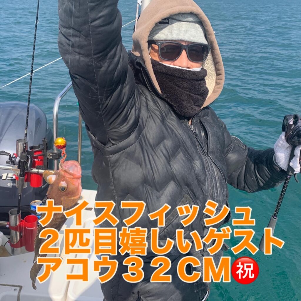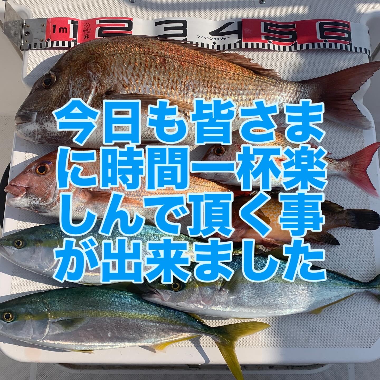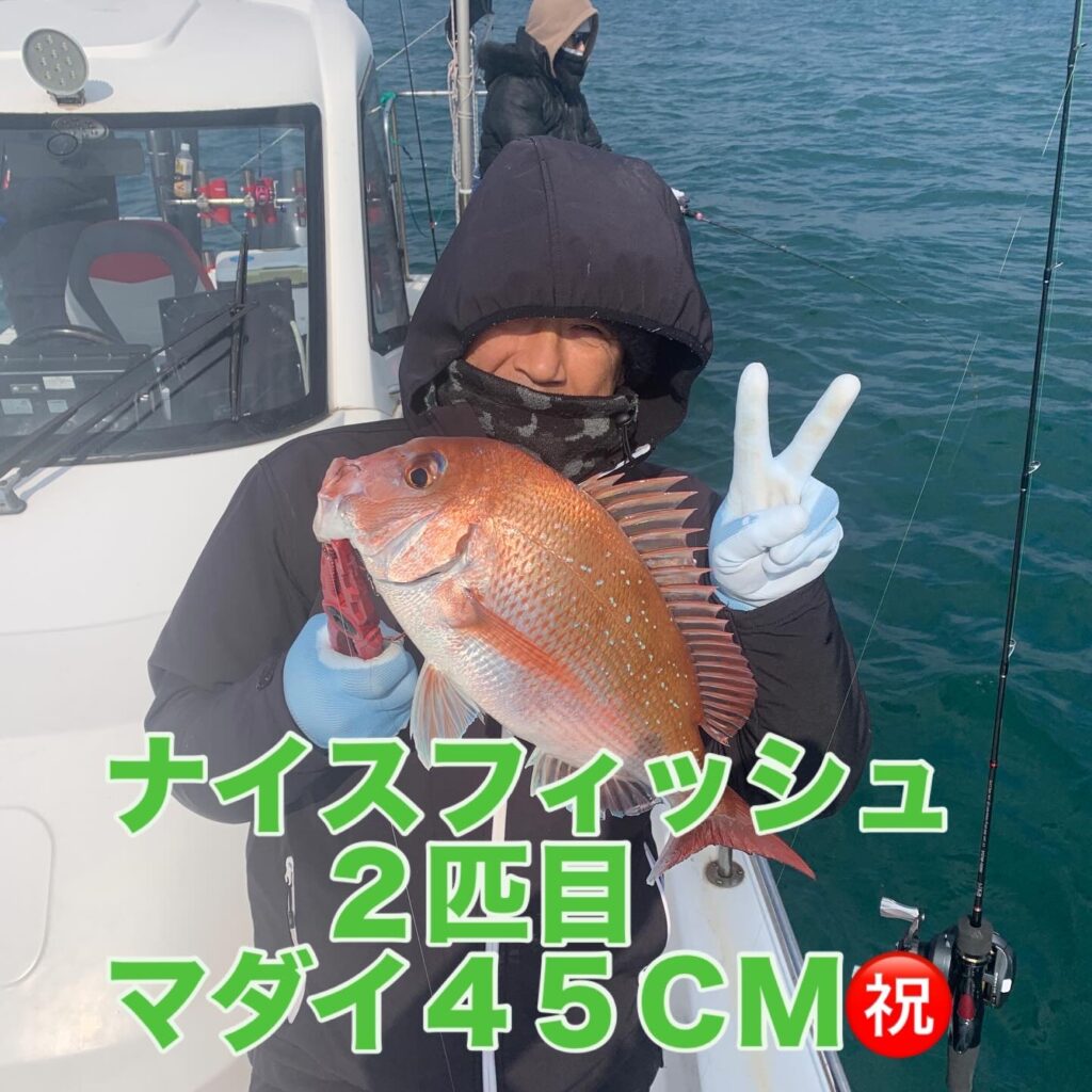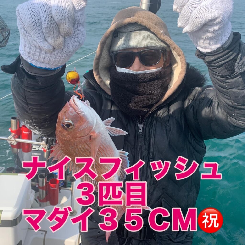 潮のタイミングに合わせタイラバポイントをテンポ良く回り、皆さまに時間一杯タイラバを楽しんで頂き、無事に狙いのマダイを全員安打で釣り上げて頂く事が出来ました👌