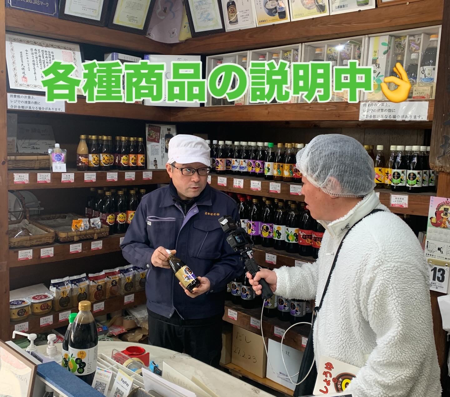 大正10年創業で今年の4月で105年目を迎える北条の老舗のお醤油の、製造過程や各種商品のご説明を丁寧に行って頂き、持参したアオリイカ&紋甲イカのお刺身で4種類のお醤油で食べ比べを行わせて頂きました👌