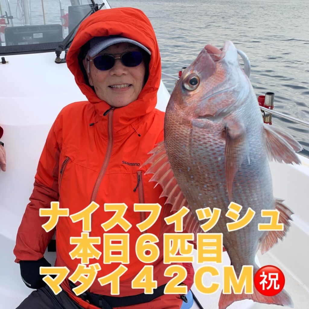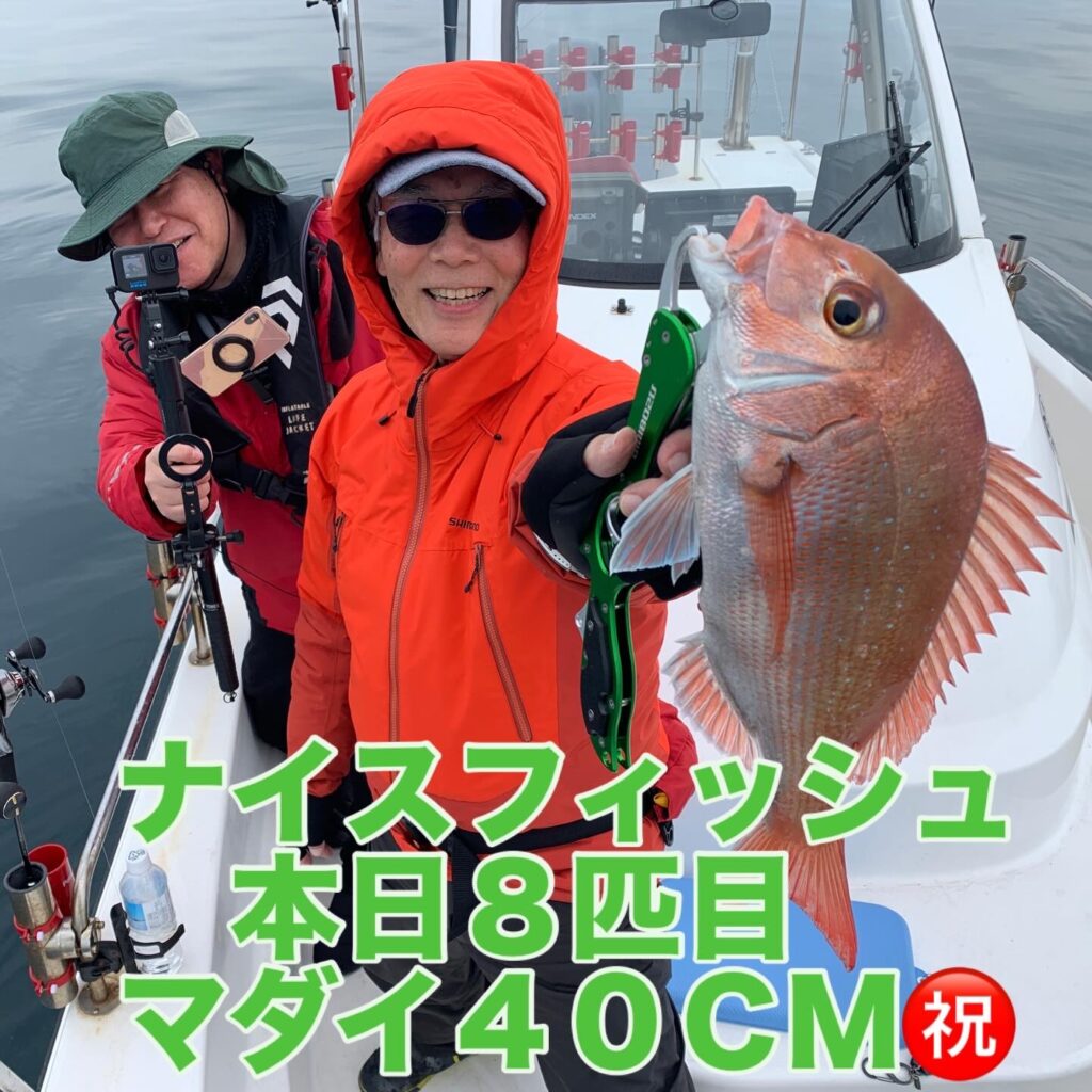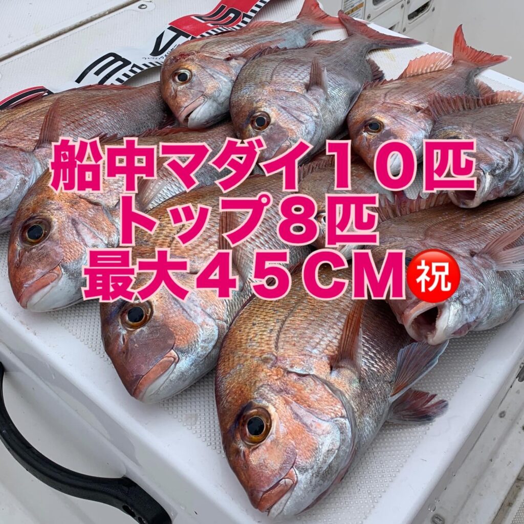 本日の釣果は船中、マダイ10匹(最大45cm)でした🎣