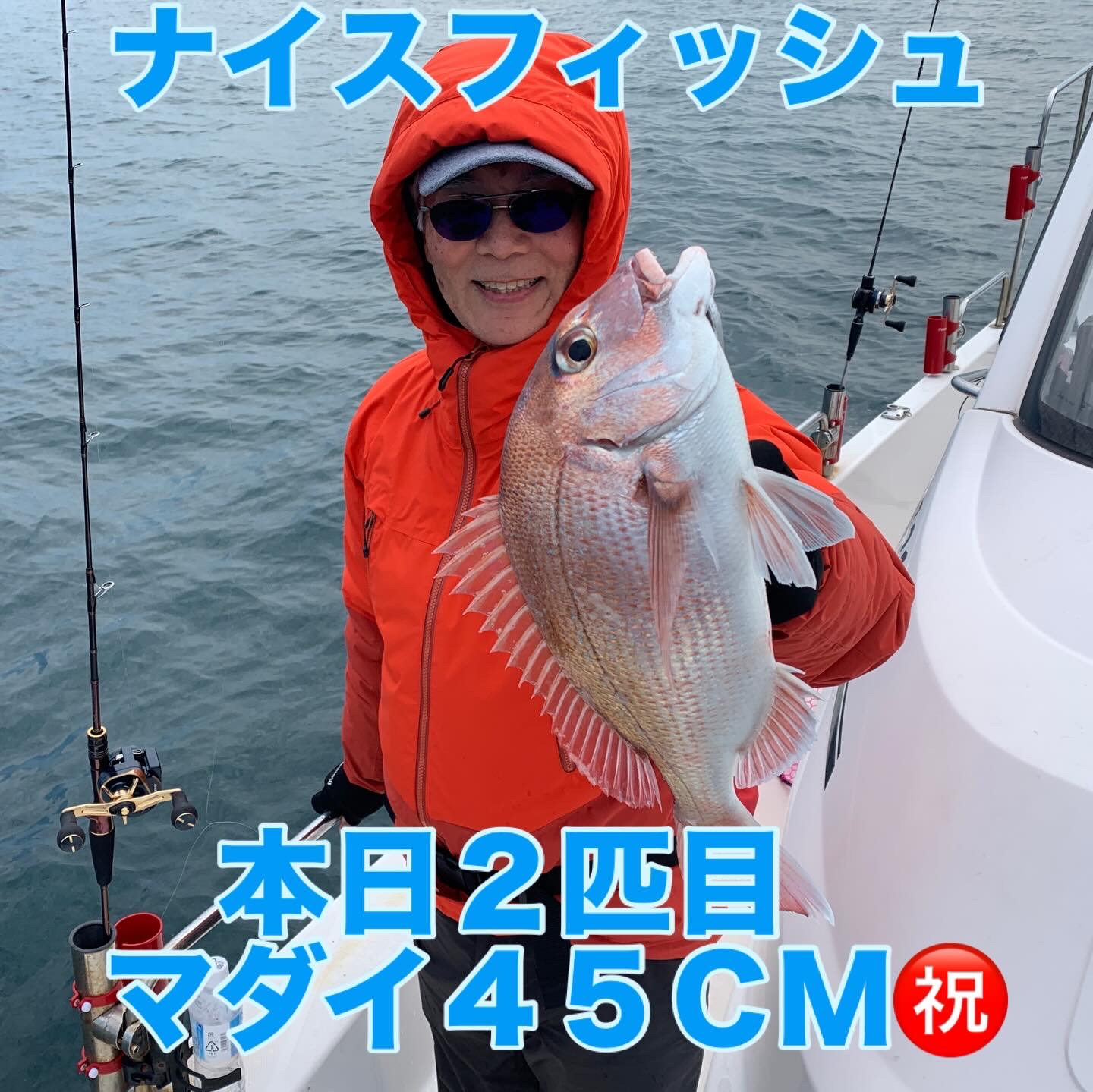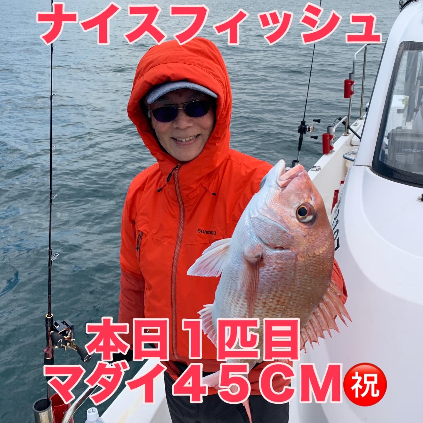 本日の釣果は船中、マダイ10匹(最大45cm)でした🎣