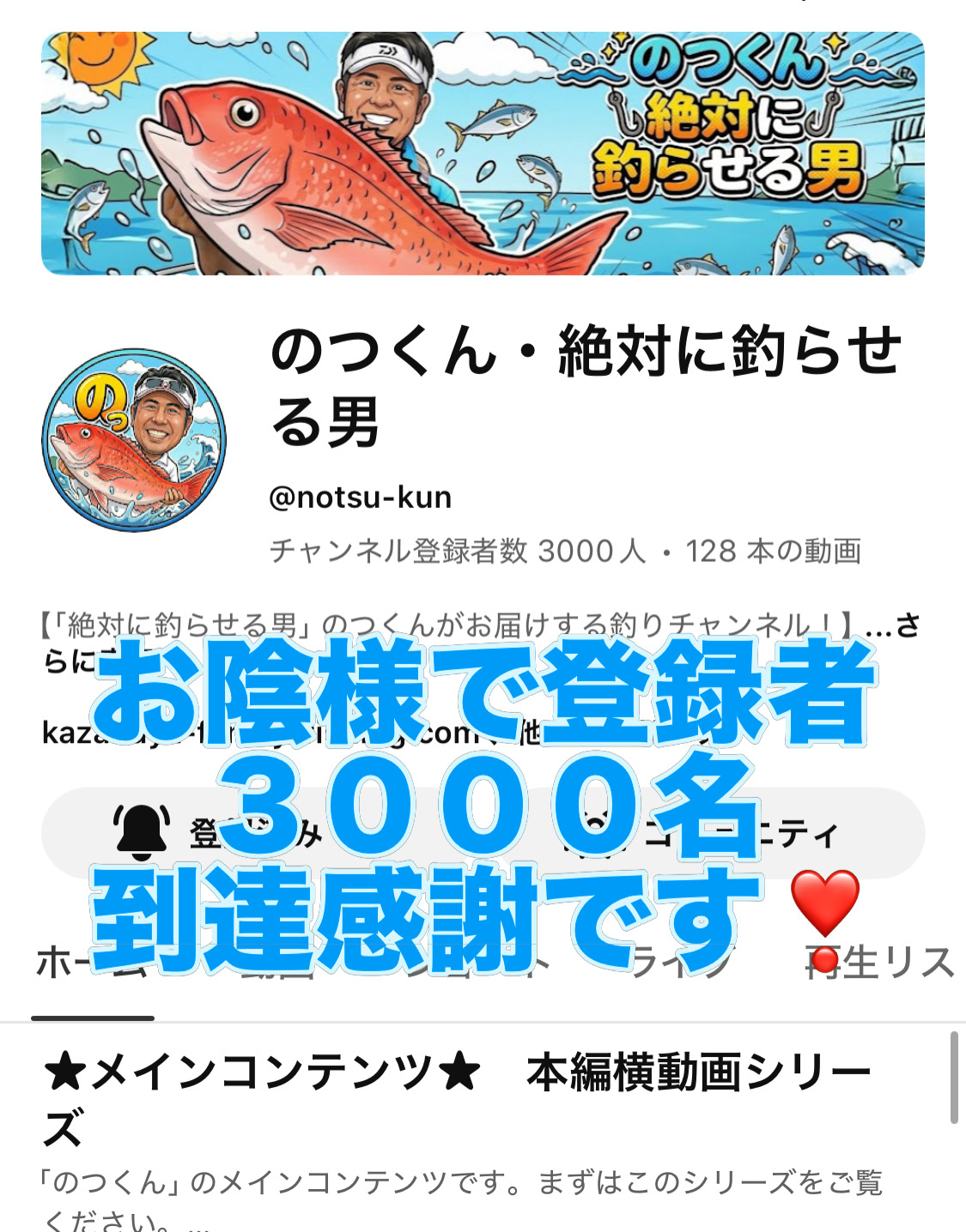 本日『YouTubeチェンネルのつくん』の登録者3,000名到達㊗️