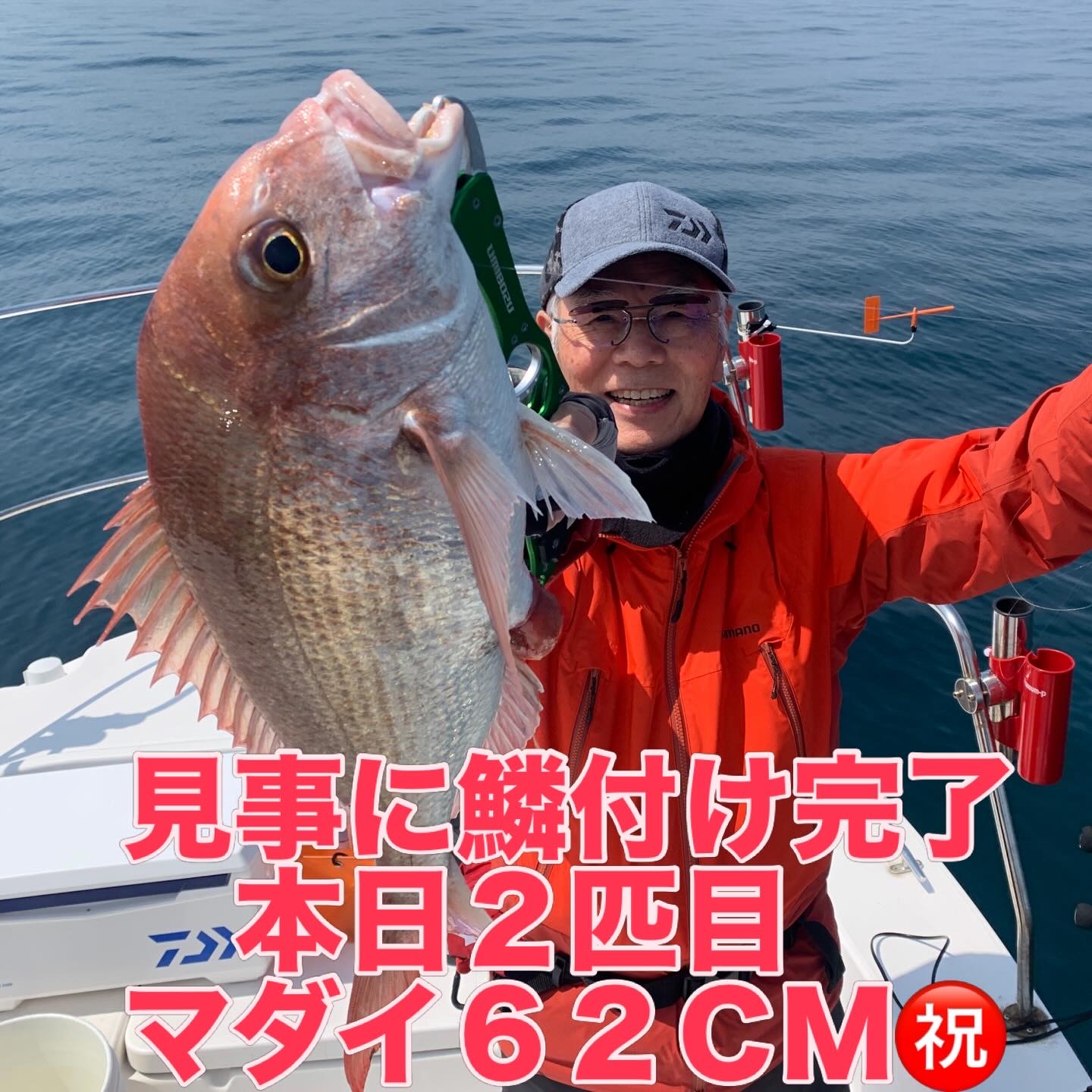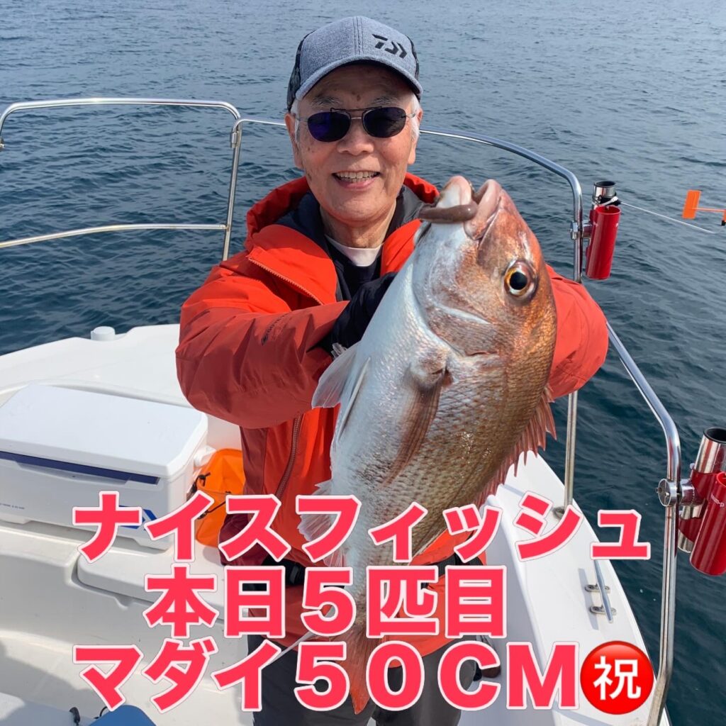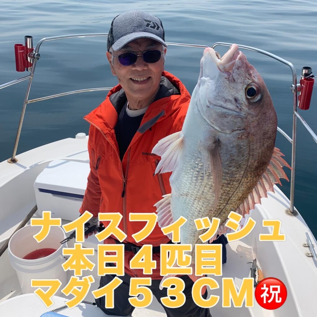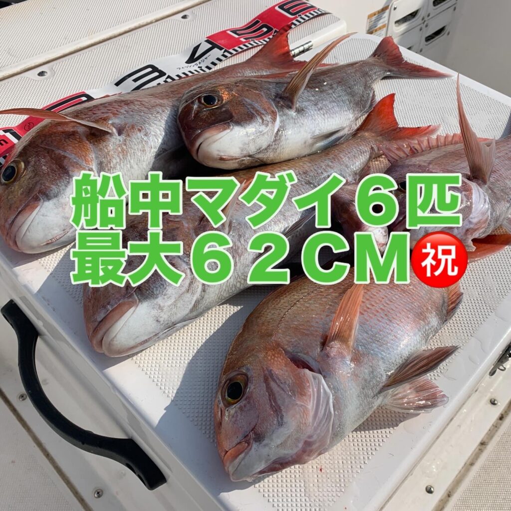 本日の釣果は船中、マダイ6匹(最大62cm)でした🎣