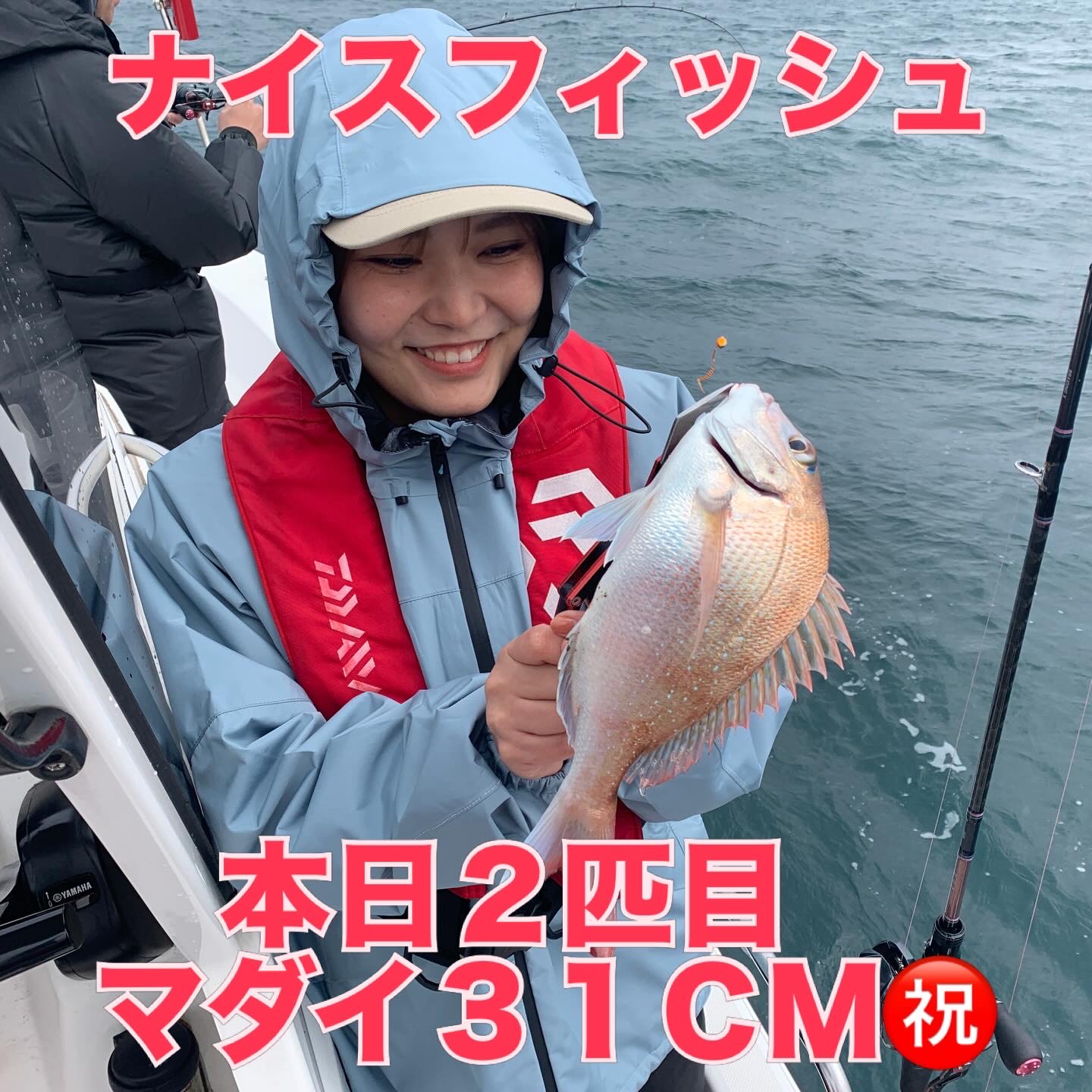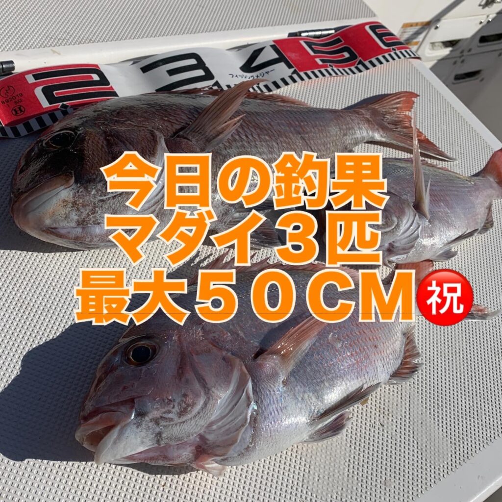 本日の釣果は船中、マダイ3匹(最大50cm)でした🎣