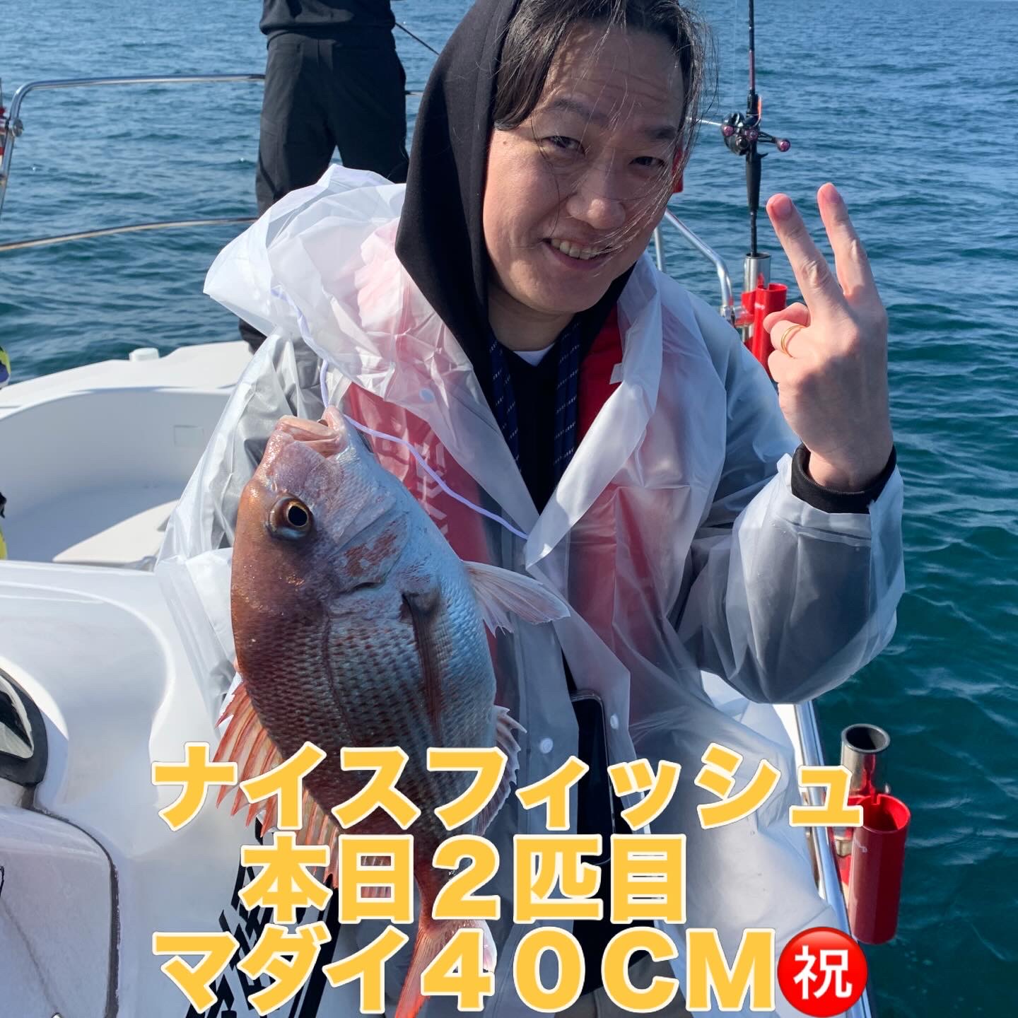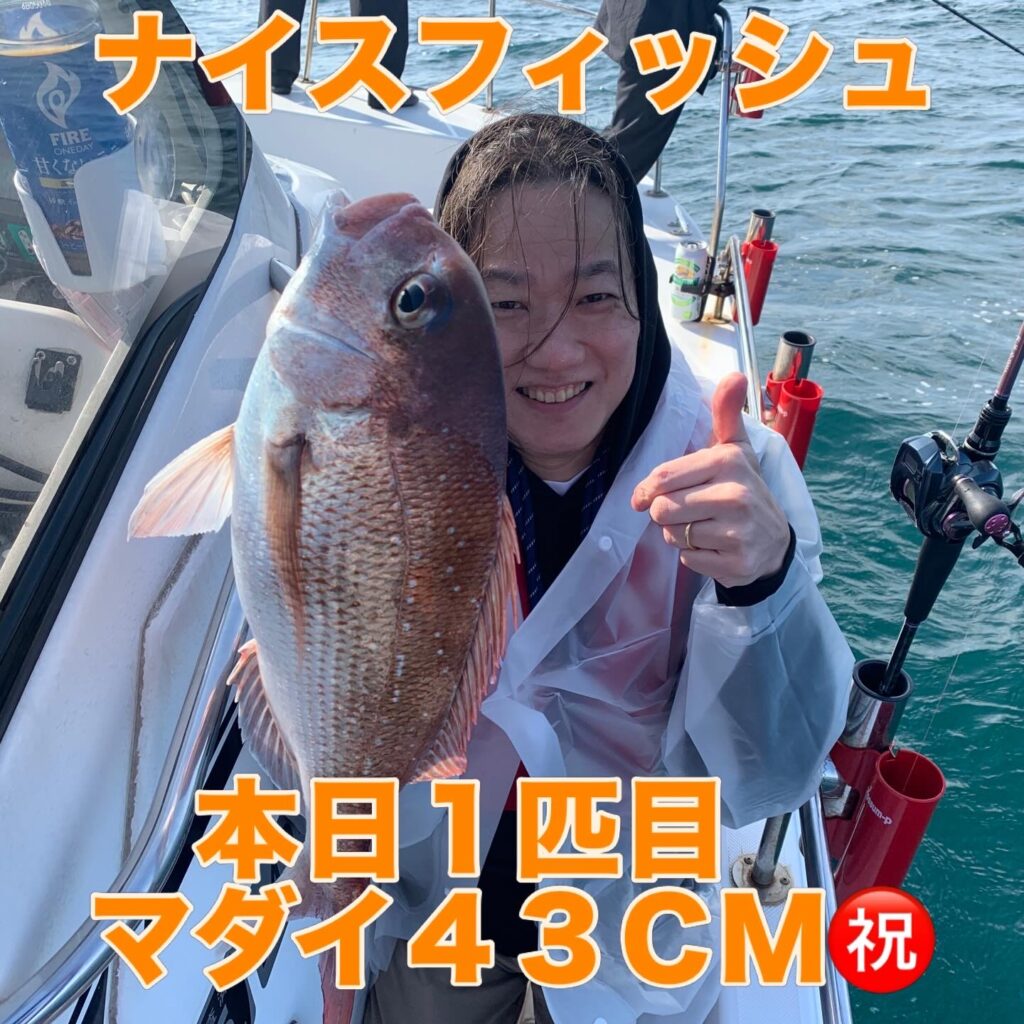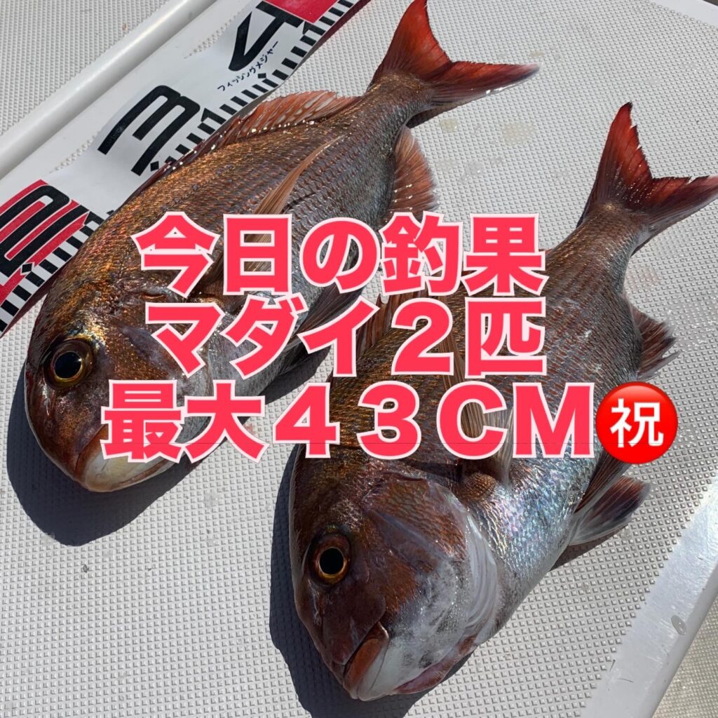 本日の釣果は船中、マダイ2匹(最大43cm)でした🎣