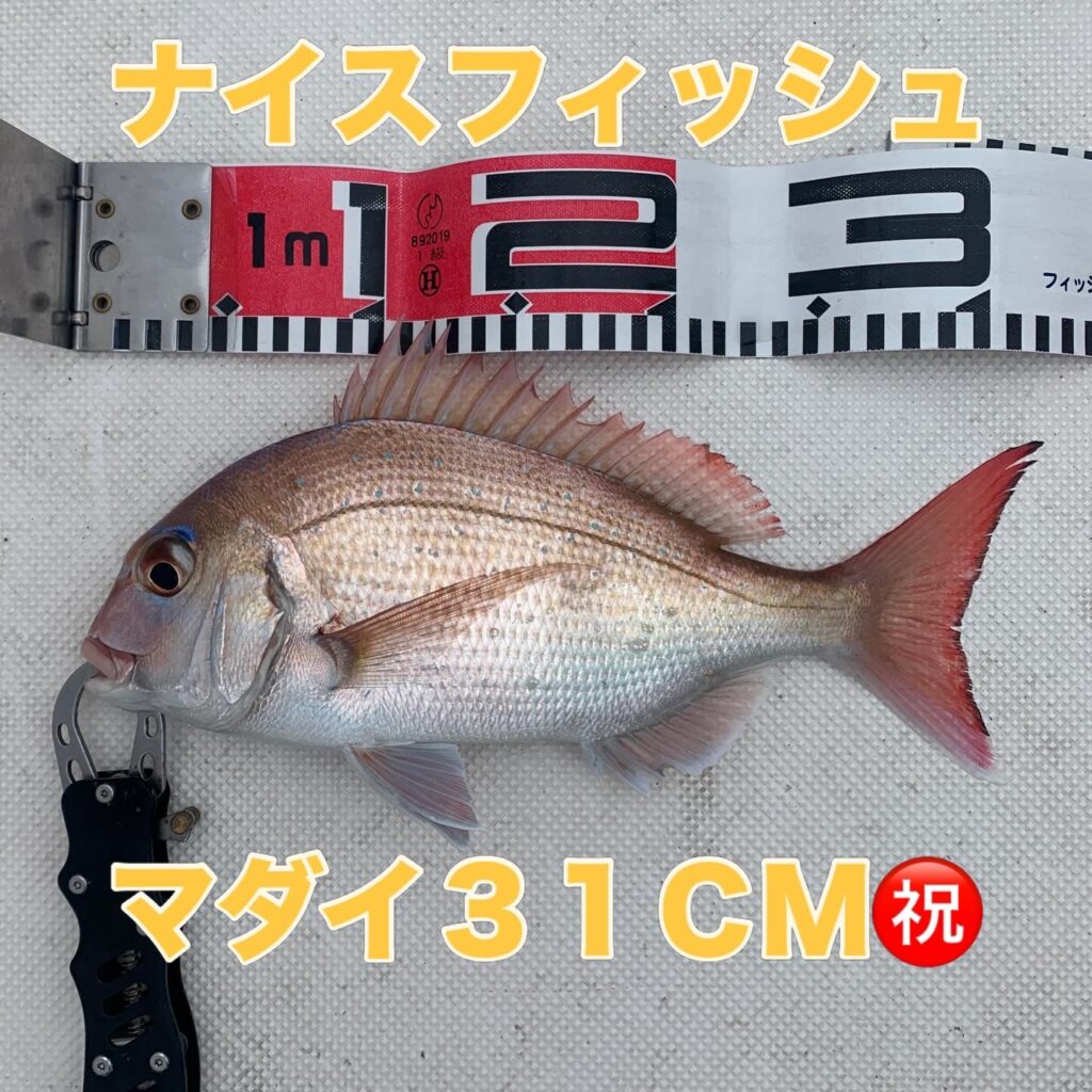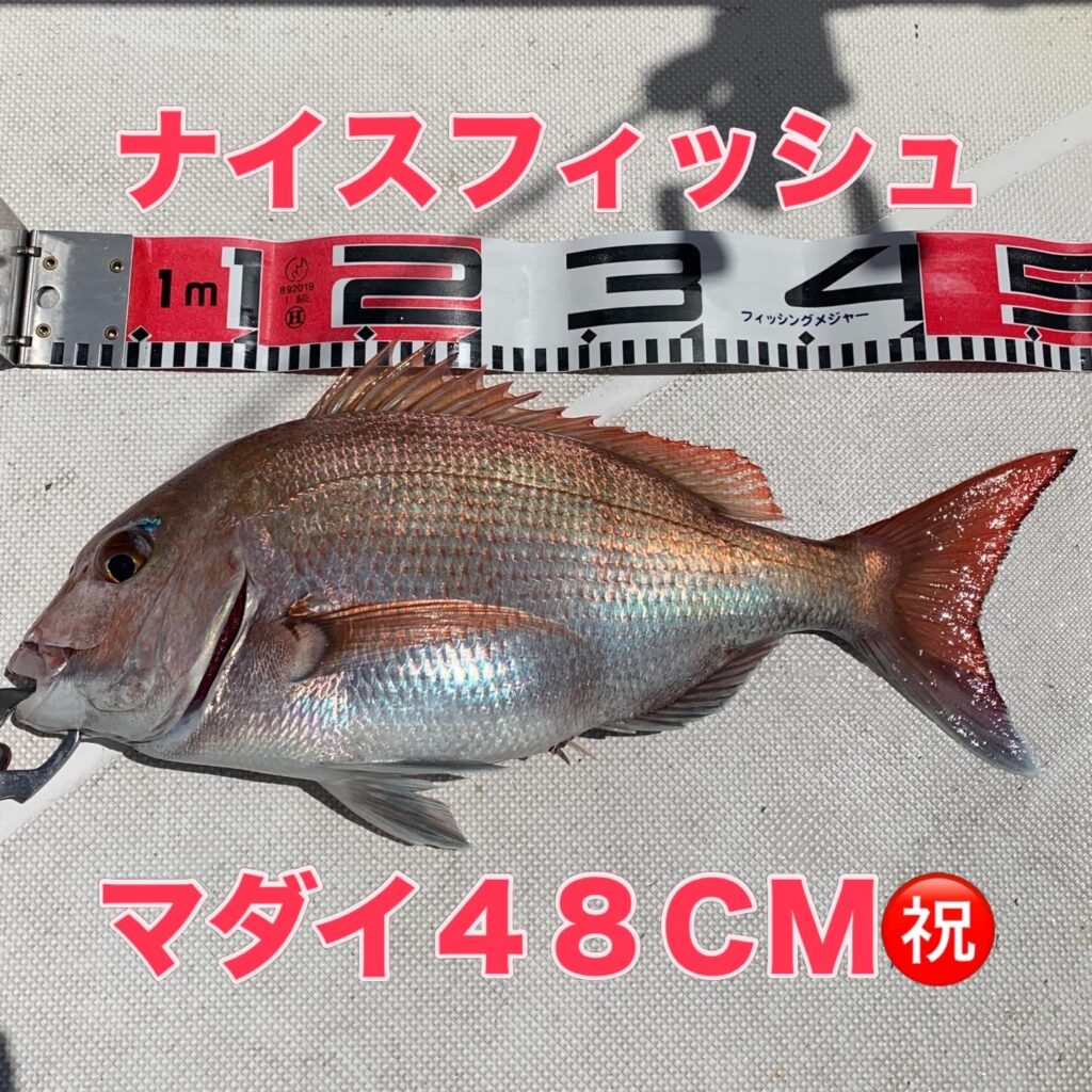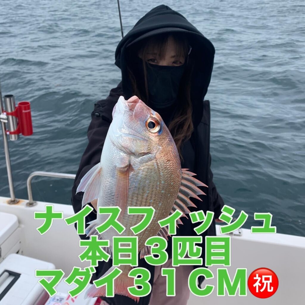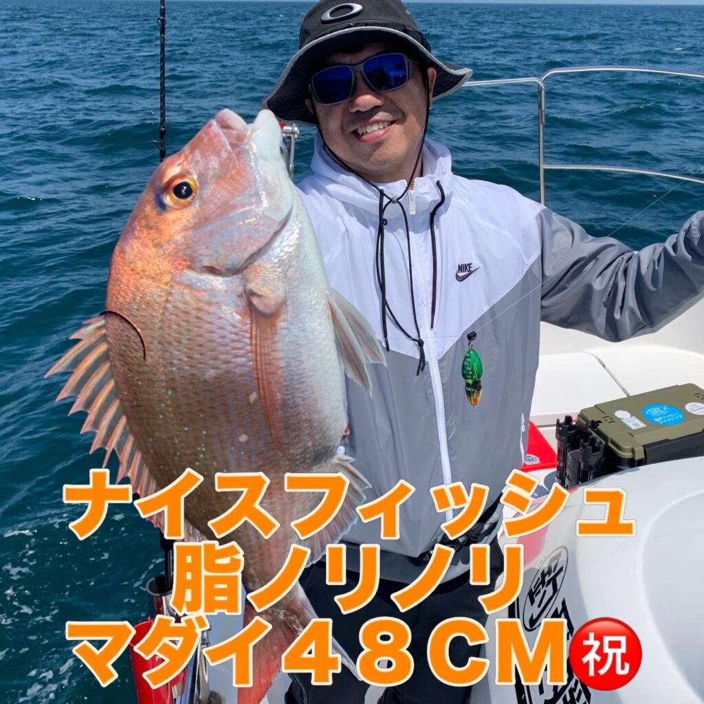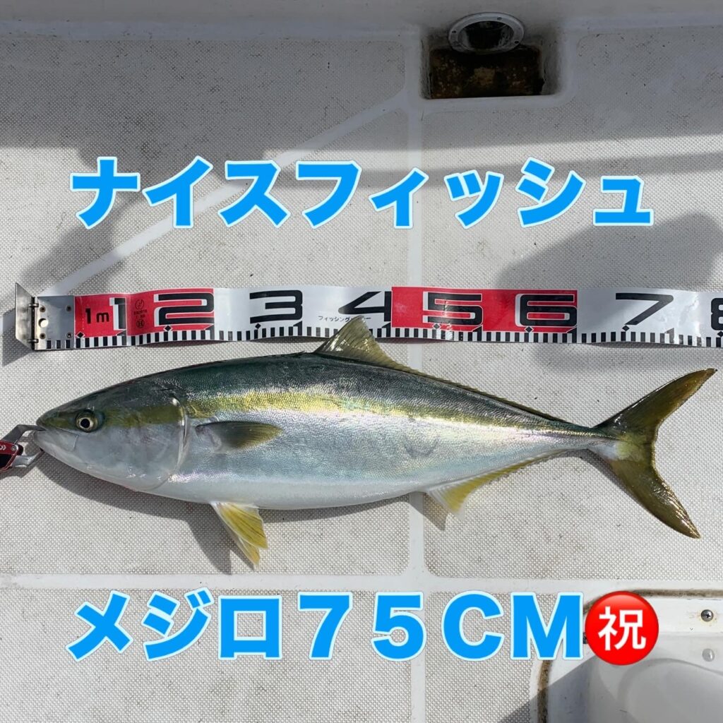 本日の釣果は船中、マダイ4匹(最大50cm)・メジロ1匹(75cm)でした🎣