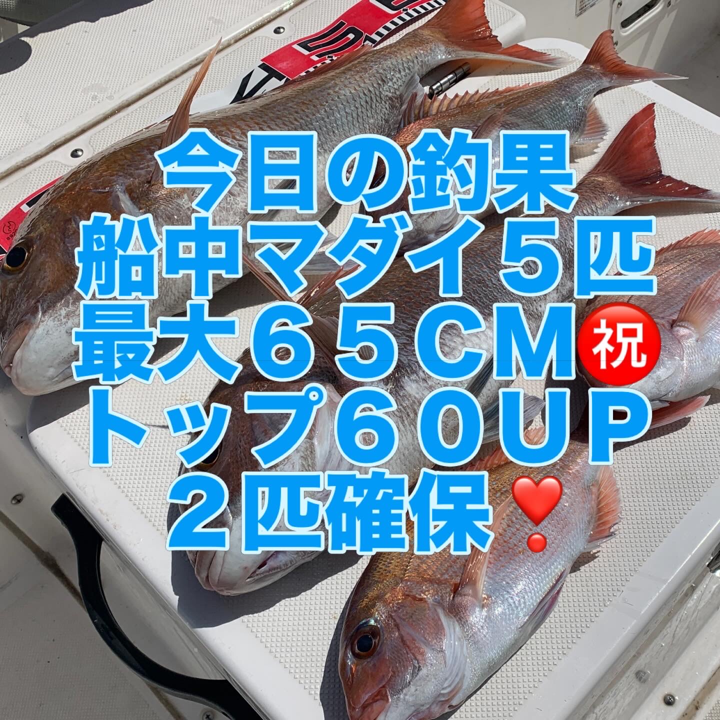 本日の釣果は船中、マダイ5匹(最大65cm)でした🎣