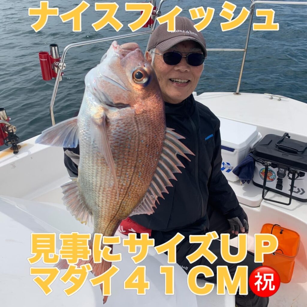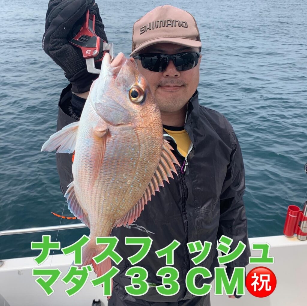 今日は朝から強風&高波で釣り難い釣行となりましたが徐々に海況も良くなり、時間一杯タイラバを楽しんで頂き無事にお2人共に、狙いの良型マダイを釣り上げて頂く事が出来ました㊗️