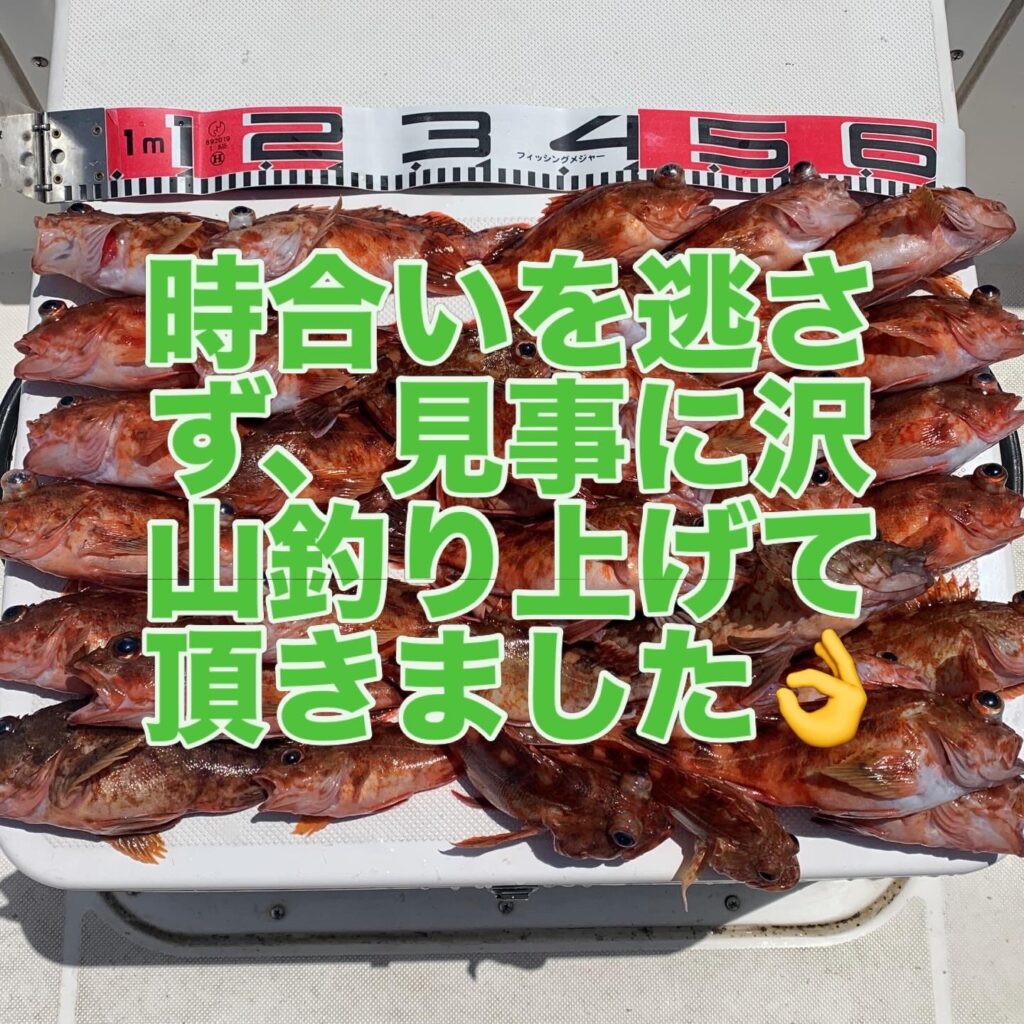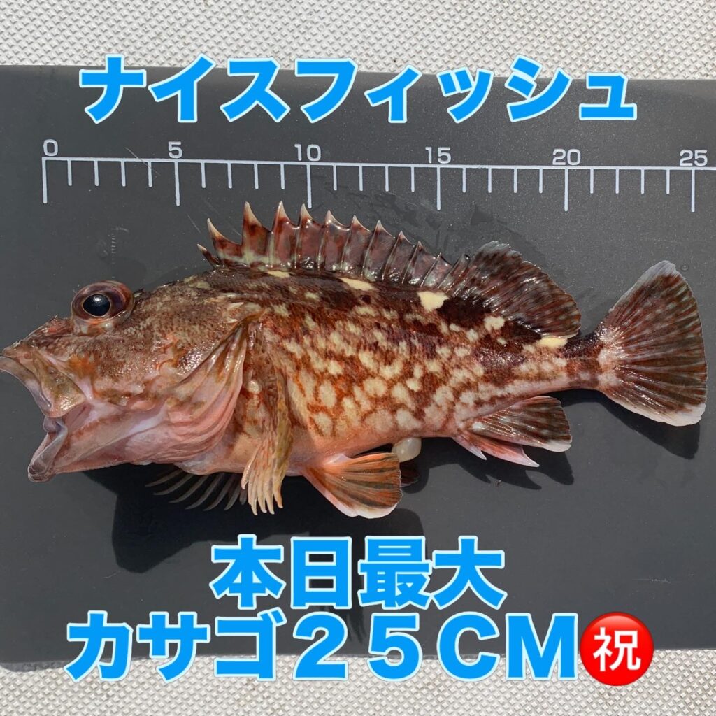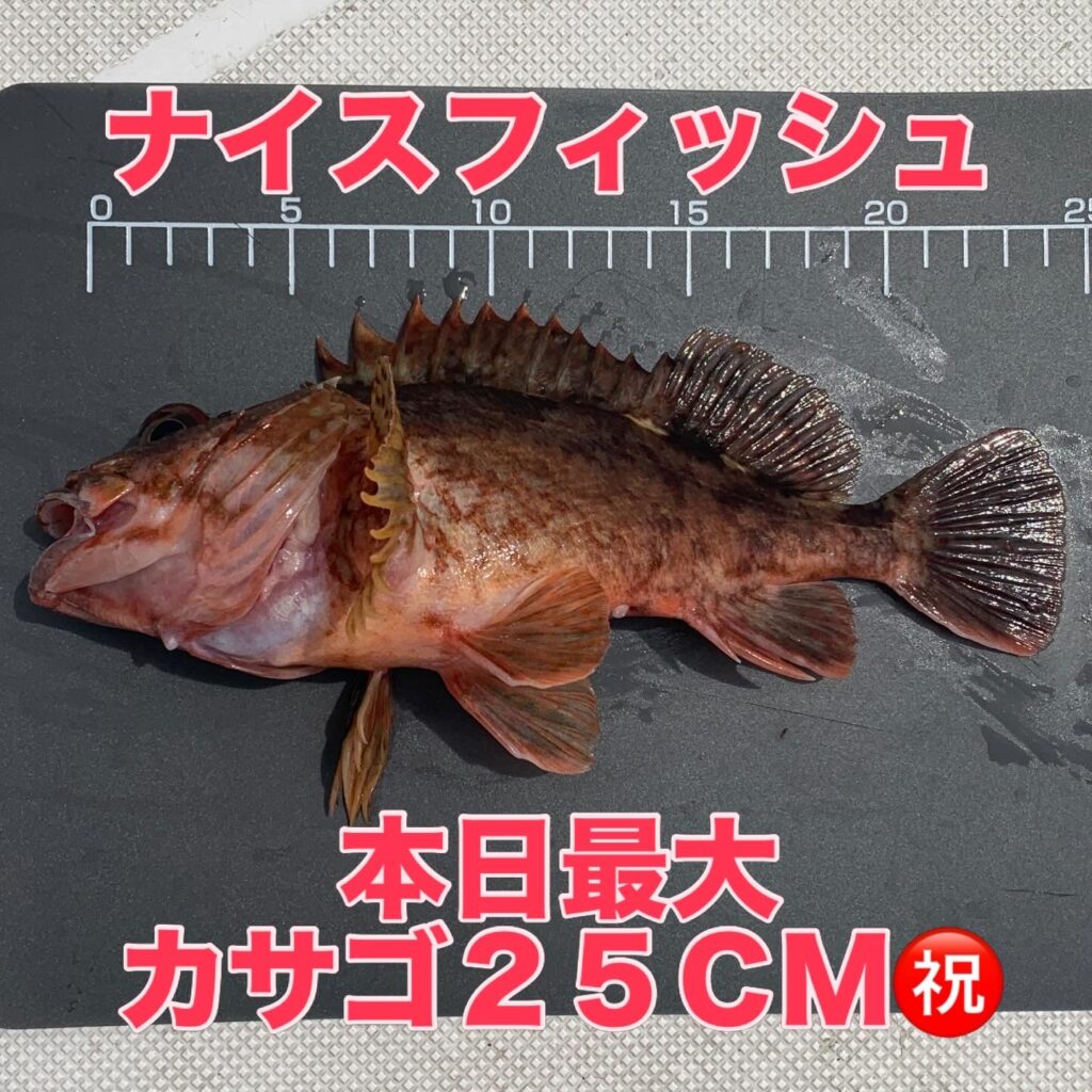 お昼前から徐々に強風&高波予報だったので、午前中のみの短時間勝負でポイントも限定される釣行となりましたが、安全を考慮しながら時間一杯カサゴ釣りを楽しんで頂き、無事に今晩の宴会用の食材を沢山釣り上げて頂く事が出来ました👌