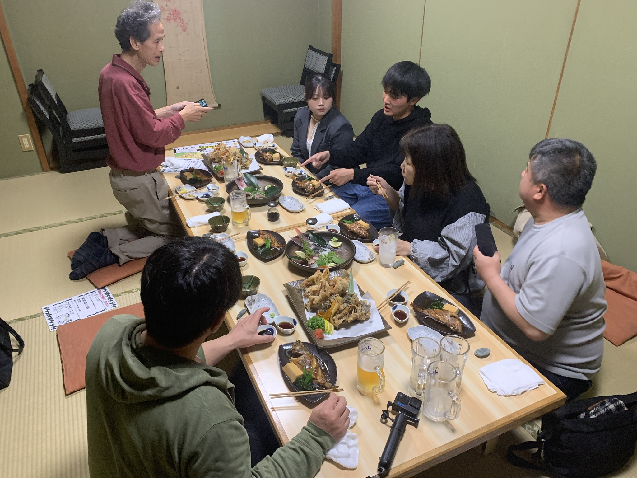 今日は1名のお客様にご協力頂き12時帰港予定でカサゴ調査&YouTube撮影を行い、帰港後は私と撮影スタッフもご一緒させて頂き、7名での『四国三郎 よしの川』さまコラボプランにて釣れたてのカサゴを調理して頂き美味しく頂きました🛥💨